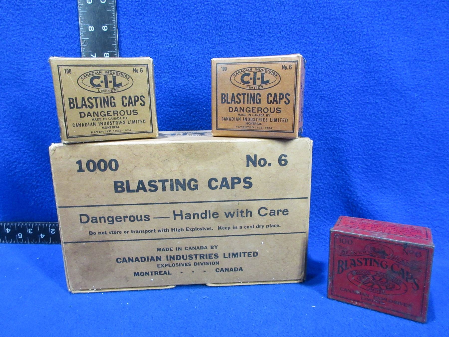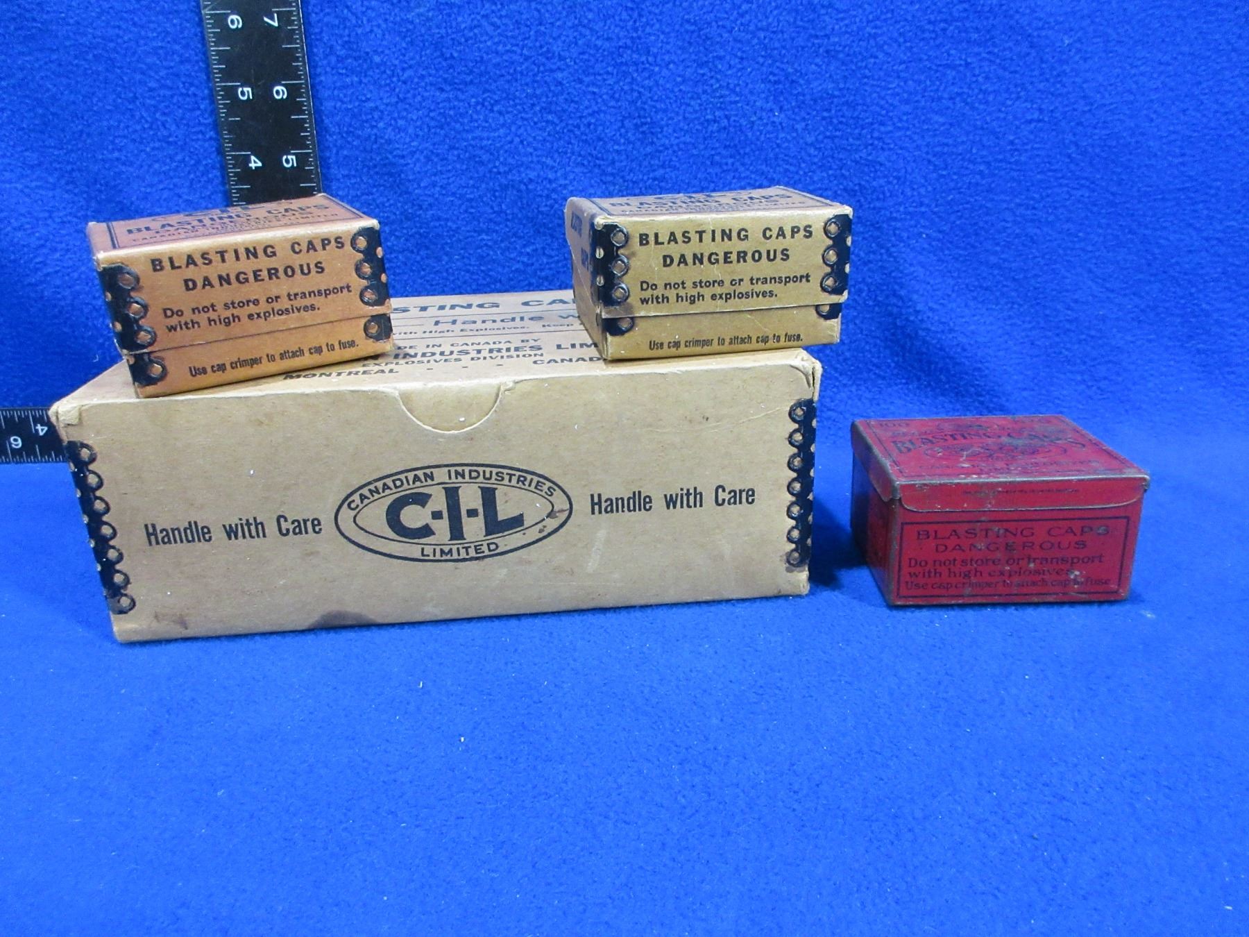 Vintage Cil No. 6 Blasting Caps - 3 Empty Cardboard Boxes & 1 Tin
