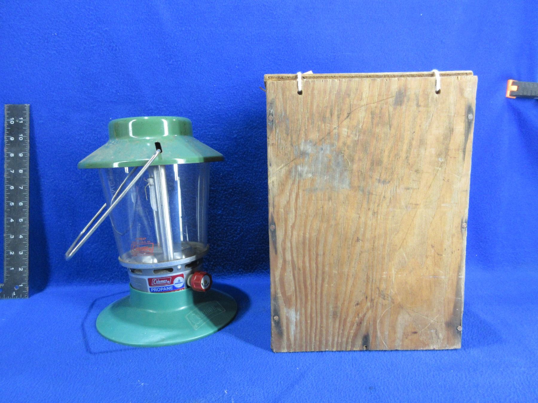 Vintage Coleman Propane Lantern Model No. 5419A-701 - Comes with homemade wood box - Not tested