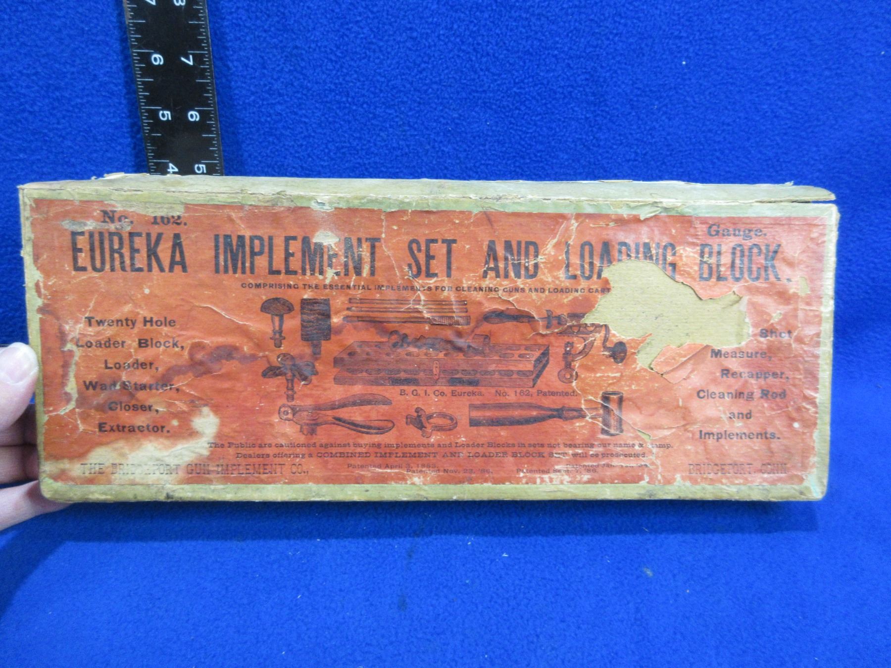 Vintage Eureka Implement Set and Loading Block Box - Implements Missing - Box is damaged
