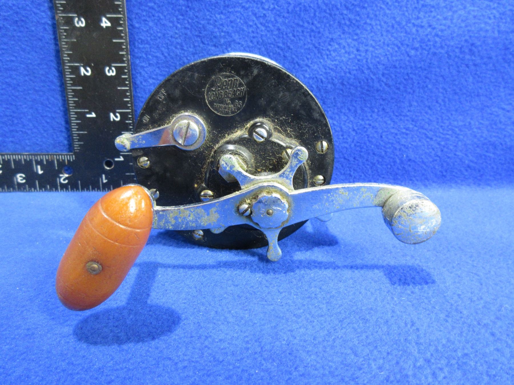 Vintage Fishing Reel with Line - Penn Long Beach No. 65 - Appears Working