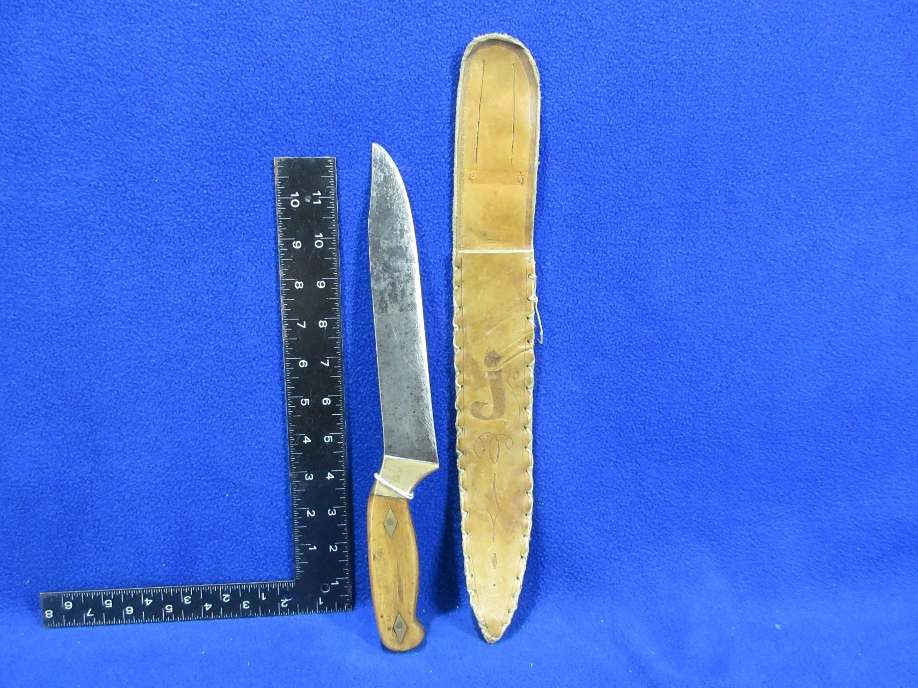 Vintage Fixed Blade Butcher Knife with Leather Sheath - 8" Blade, 12 1/2" Total Length