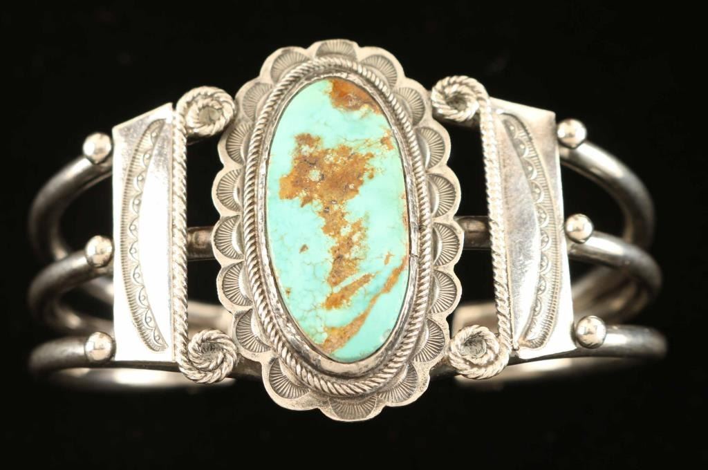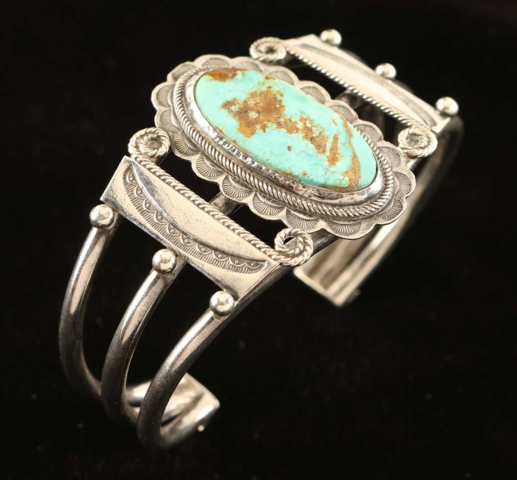 Royston cuff bracelet set in sterling silver, 5 5/8" Gap 1 1/4-6.3/4 56.3g.