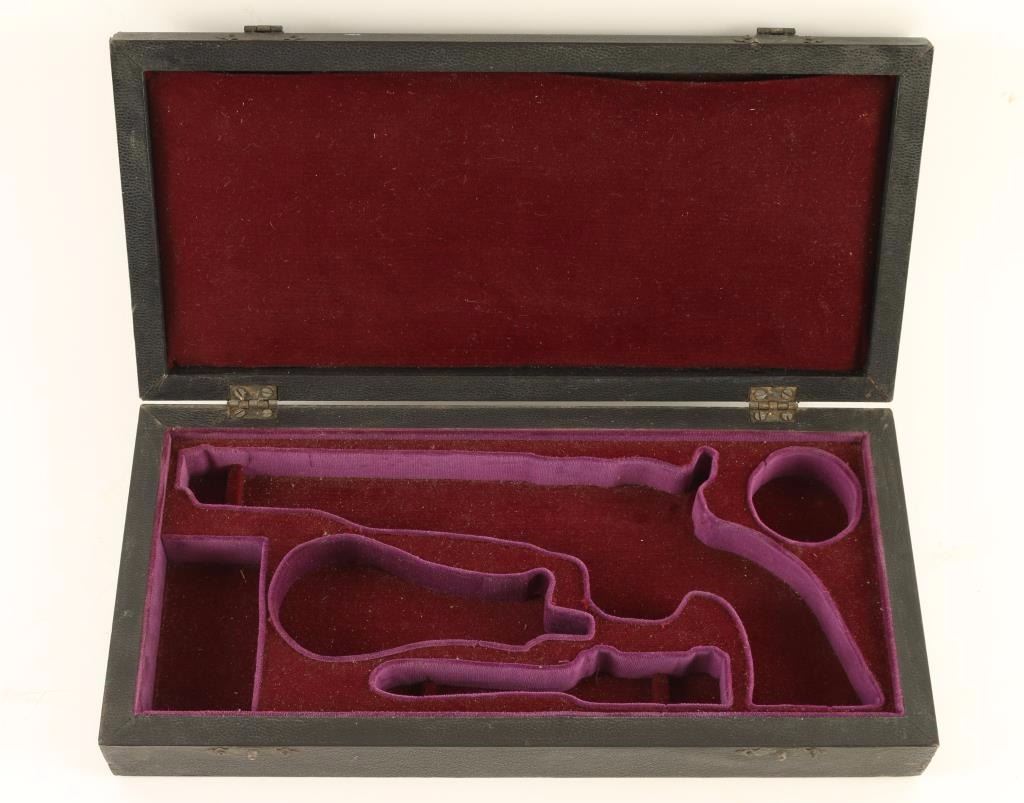 1970's case for 5 1/2" 62 Police by Peterson Case Co. Purple velvet lining. Measures 12" x 5 5/8" x 2". Good condition.