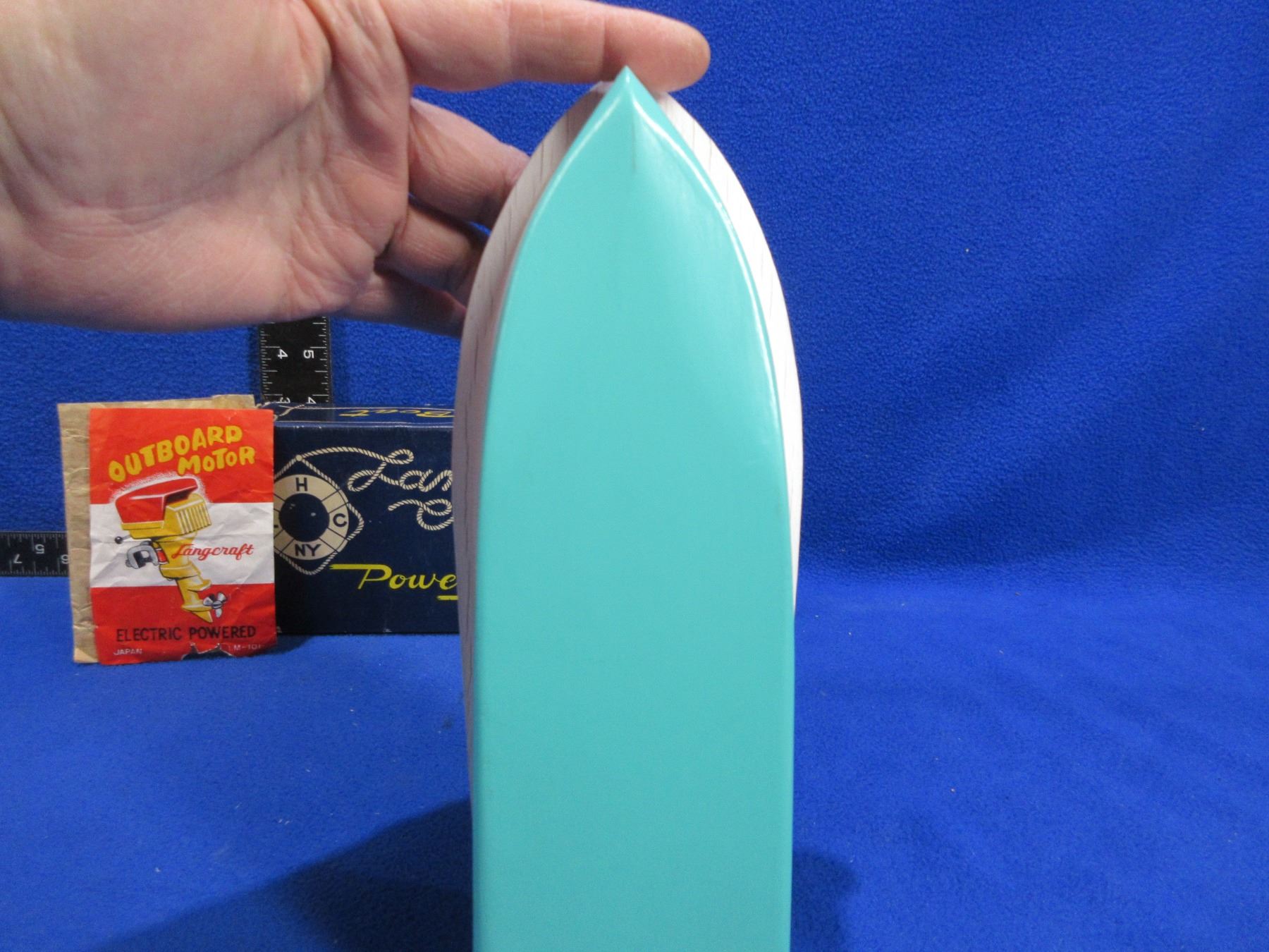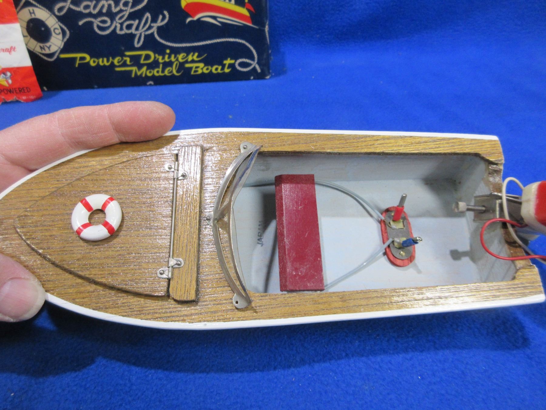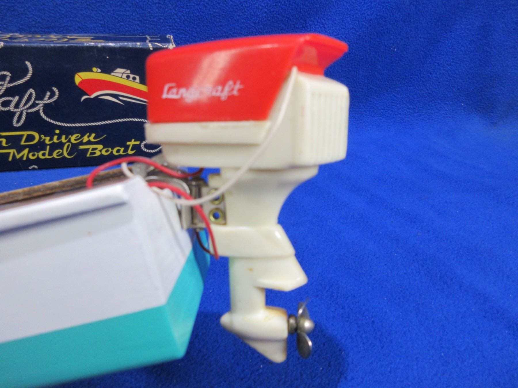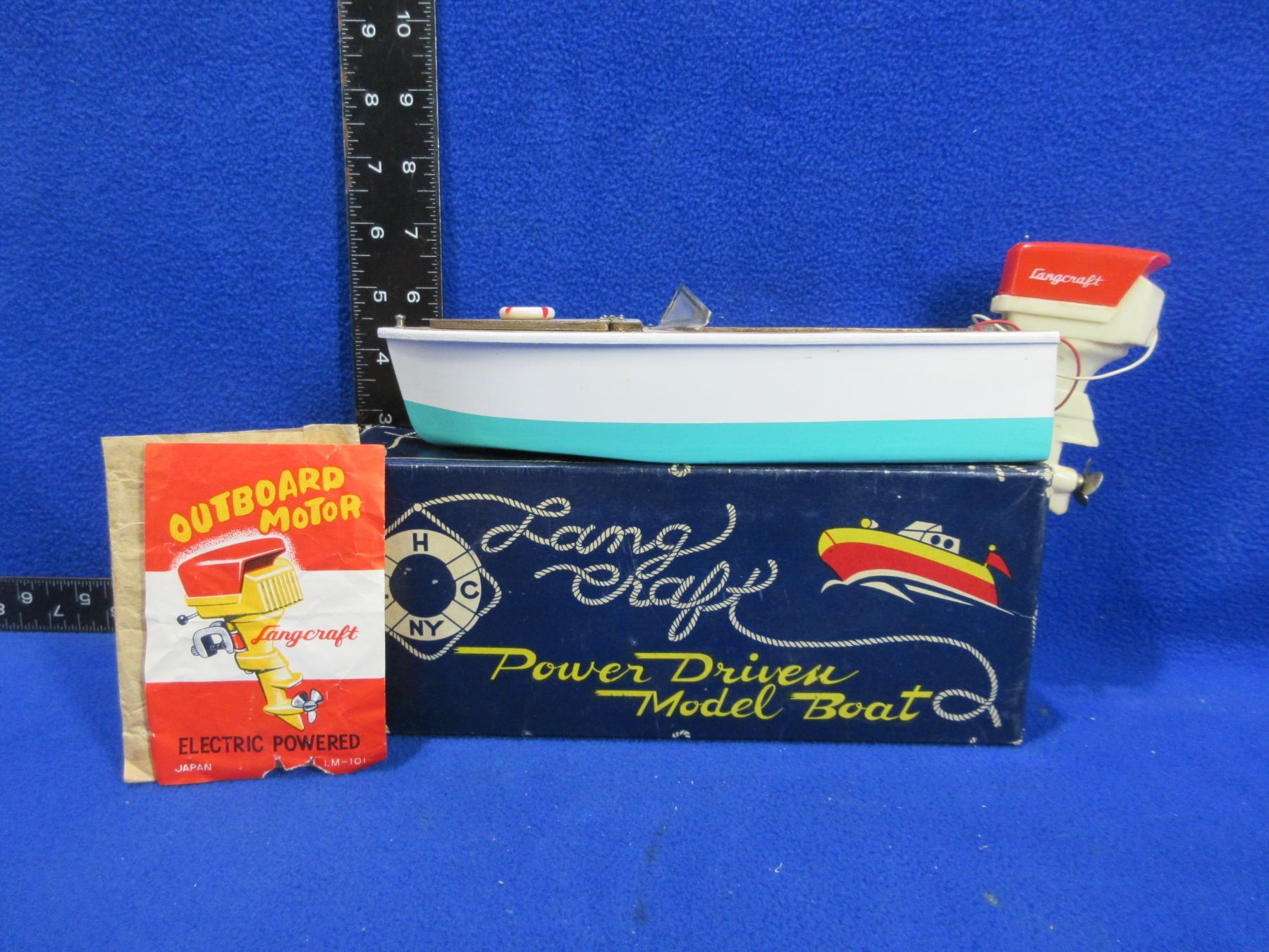 Vintage Langcraft Power Driven Electric Model Boat - Comes with original box. Boat and box in nice condition but boat may be missing parts and needs electrical work