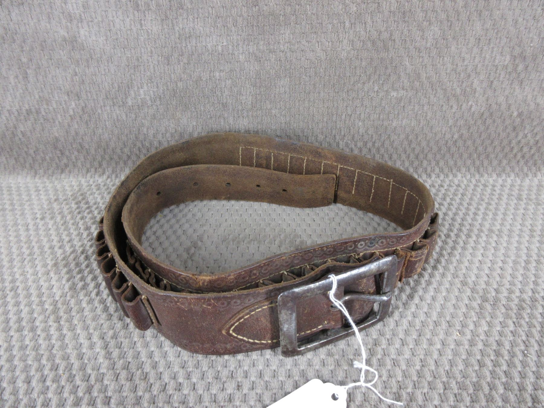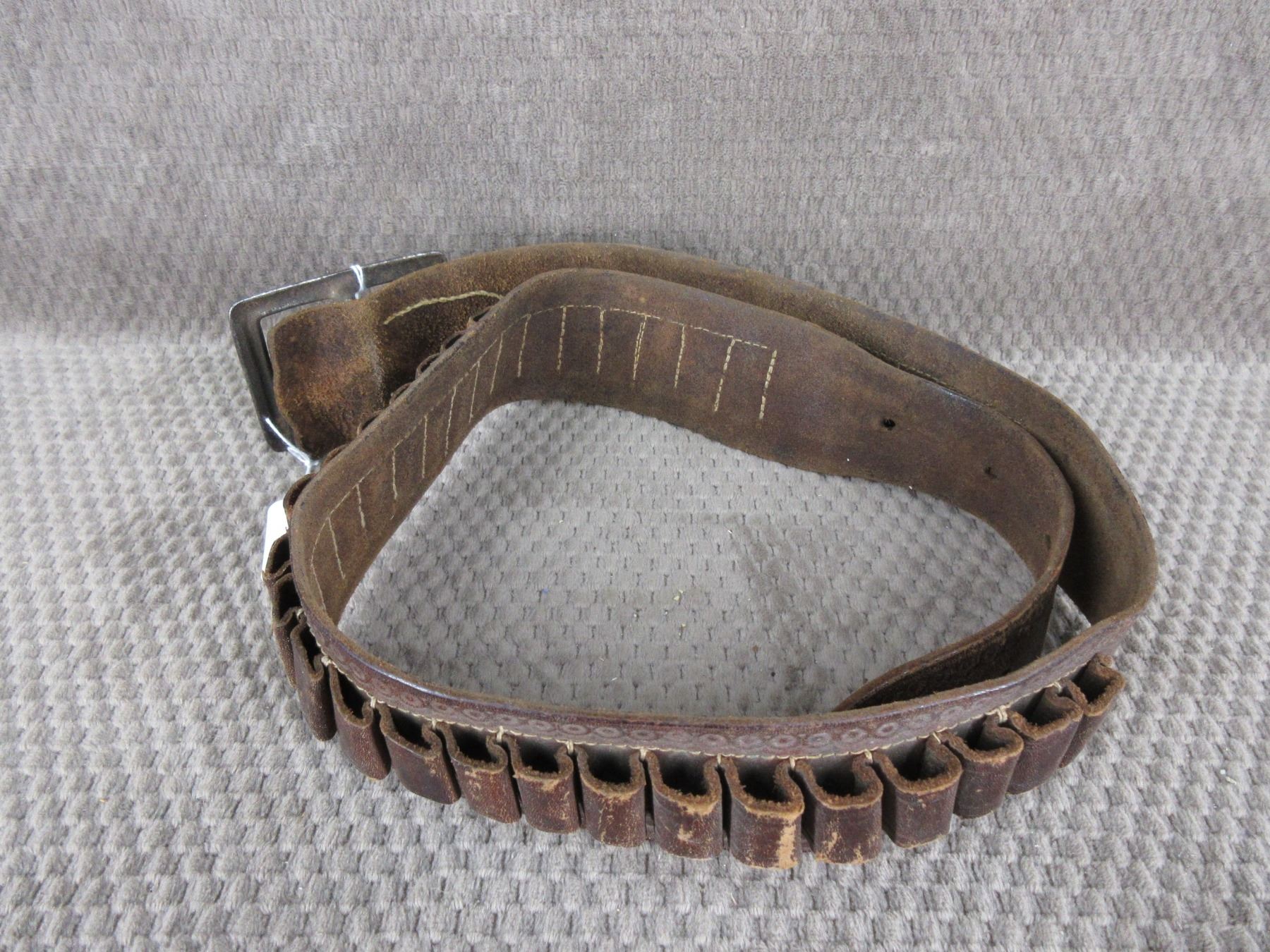 Vintage Leather Ammunition Belt - Appears to be a 45 cal. and 32" belt