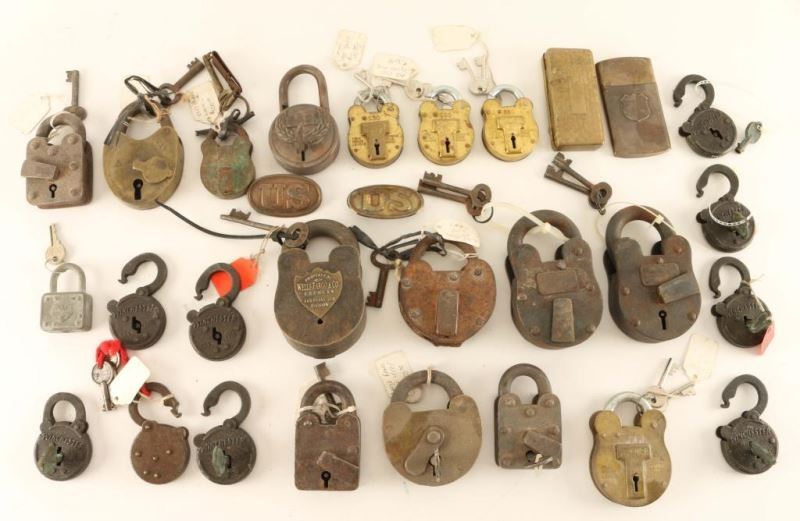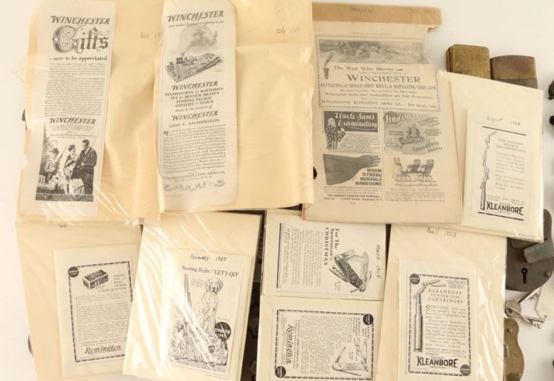 Various types and sizes some marked Wells Fargo. Also included is vintage gun ads.