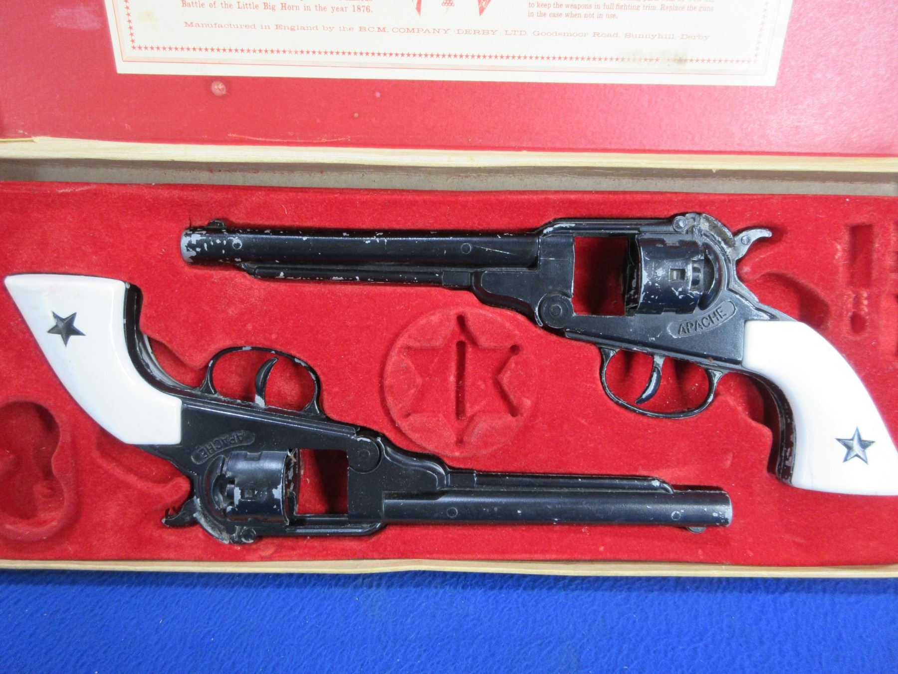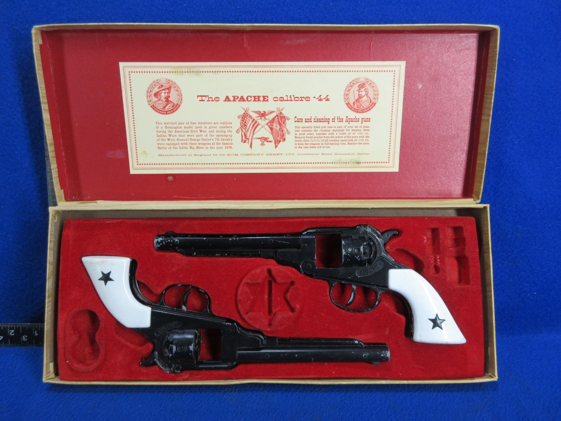 Vintage Matched Pair Cap Guns - The Apache Calibre .44 - Cylinders, Badge, Caps, Screwdriver and Oil are all Missing - In Original Case