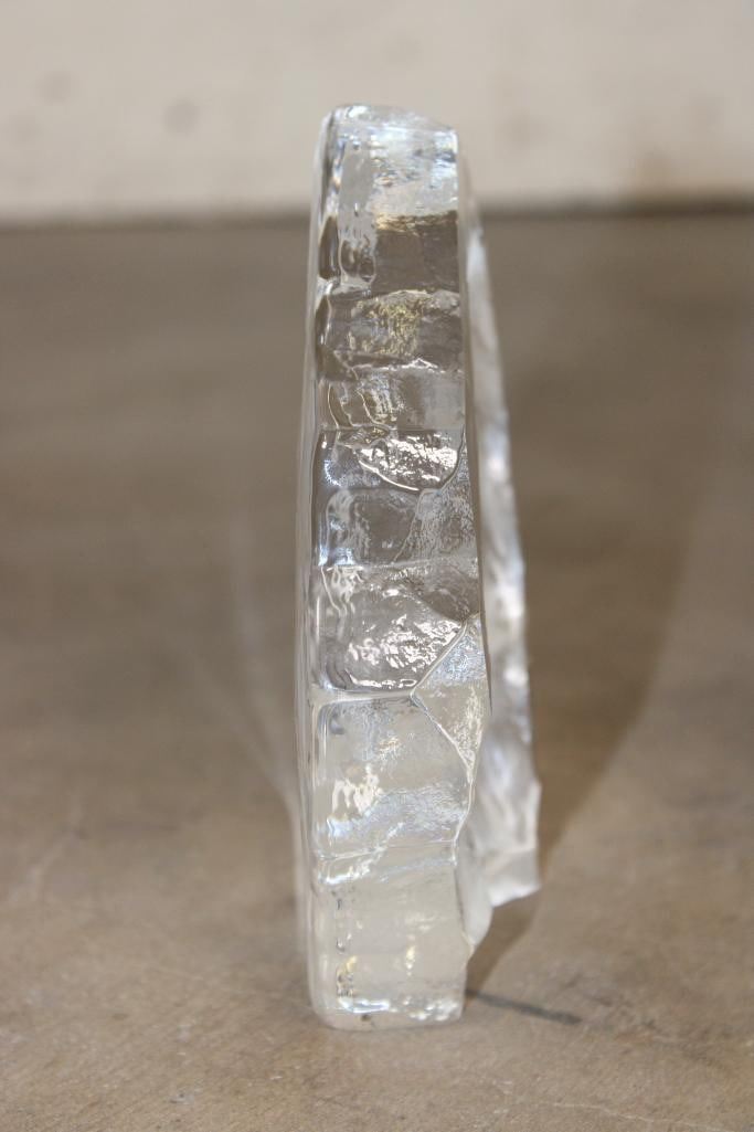 Crystal AFRICAN LION Sculpture by Mats Jonasson for Kosta Boda Signature Collection. It was hand-made in Sweden and is made of Lead Crystal (28% Pb0). It measures 7" Tall x 6.25" Wide x 1.75" Thick. The Total Weight is 3 lbs 14 oz. COLLECTIBLE AFRICAN DECOR