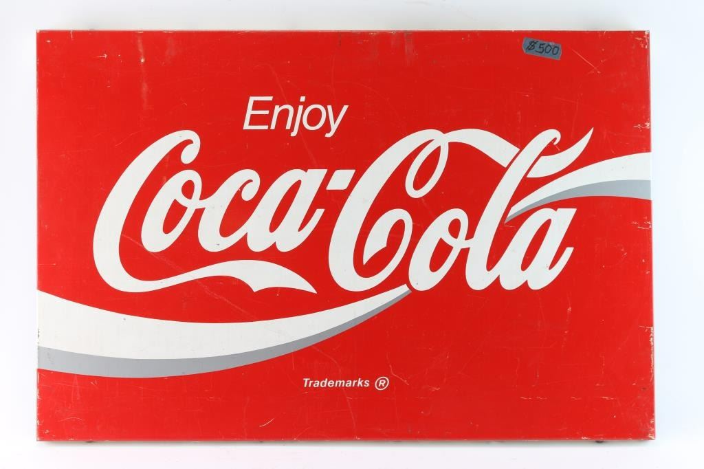 Large metal Coca-Cola Sign. Measures: 36"W x 24"H. ***Buyer Must Arrange Shipping***