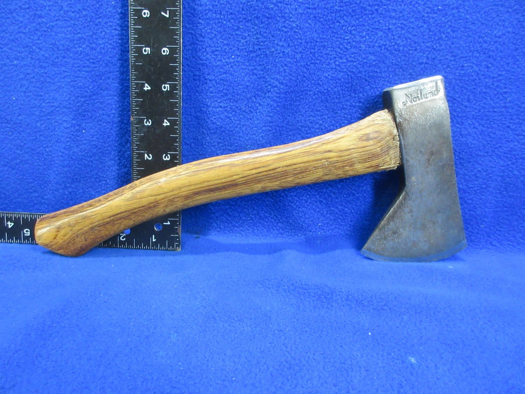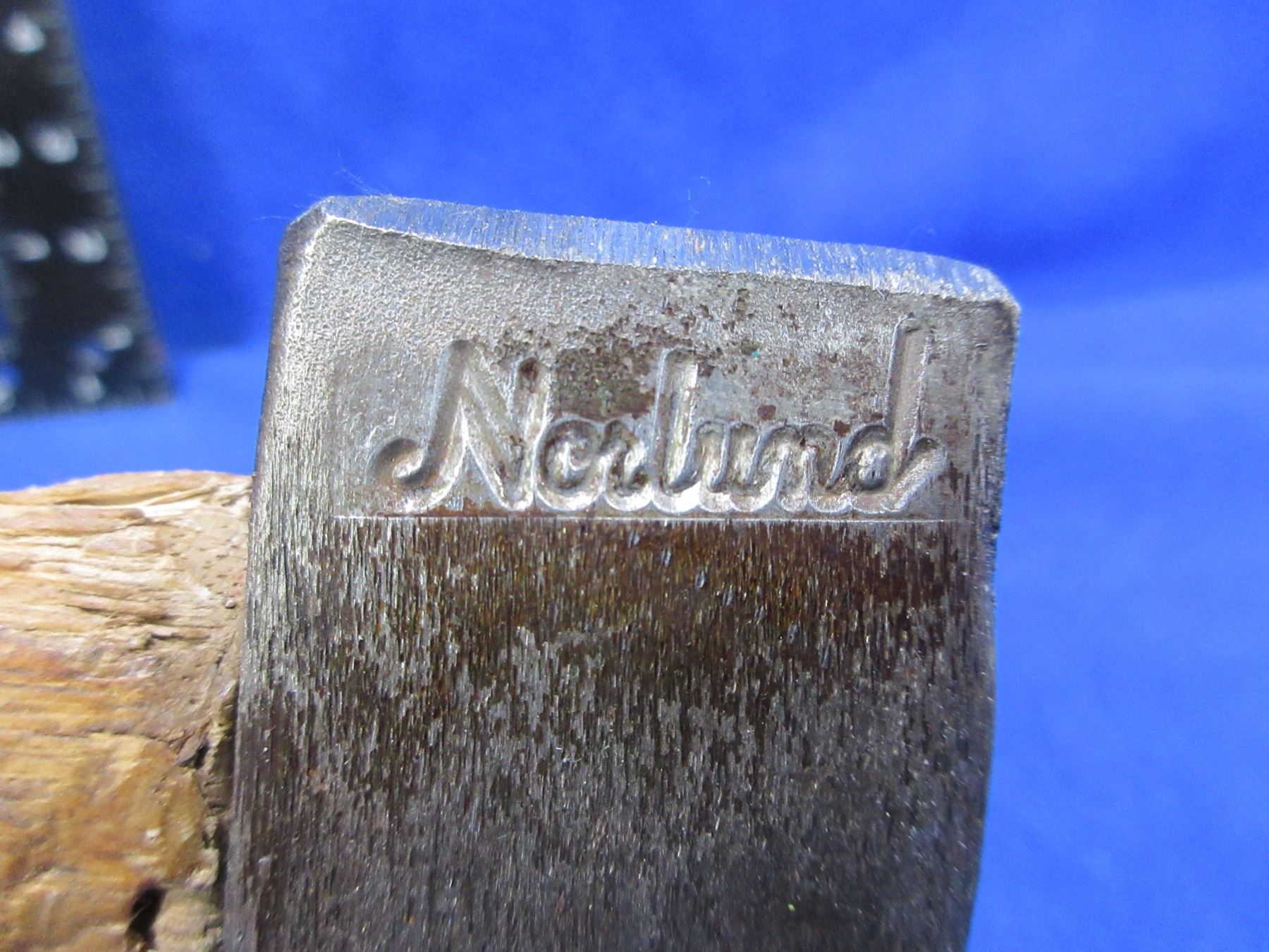 Vintage Norlund Hatchet - 3" Blade, 12" Total Length - Handle has some damage near the head and head has some play
