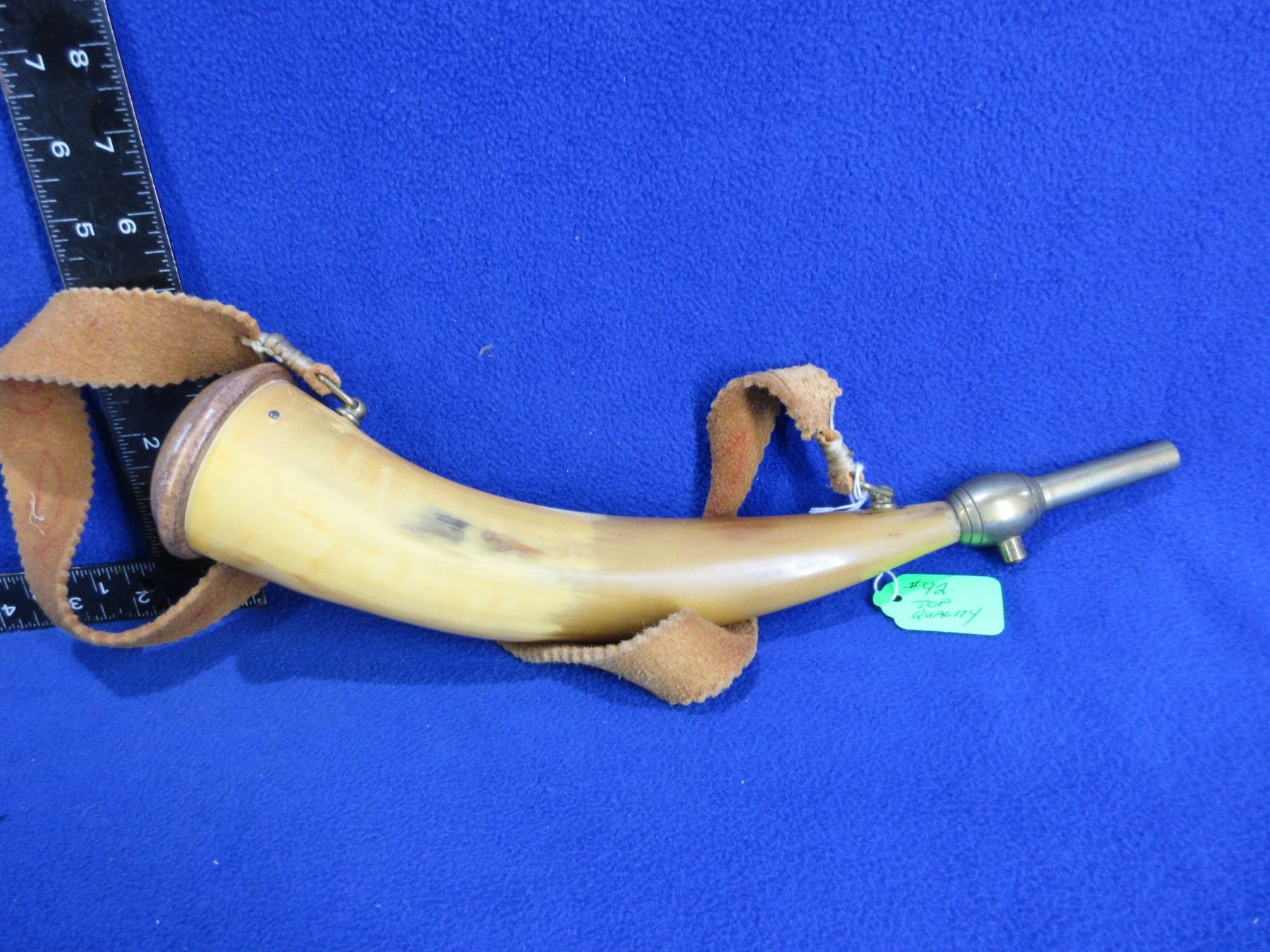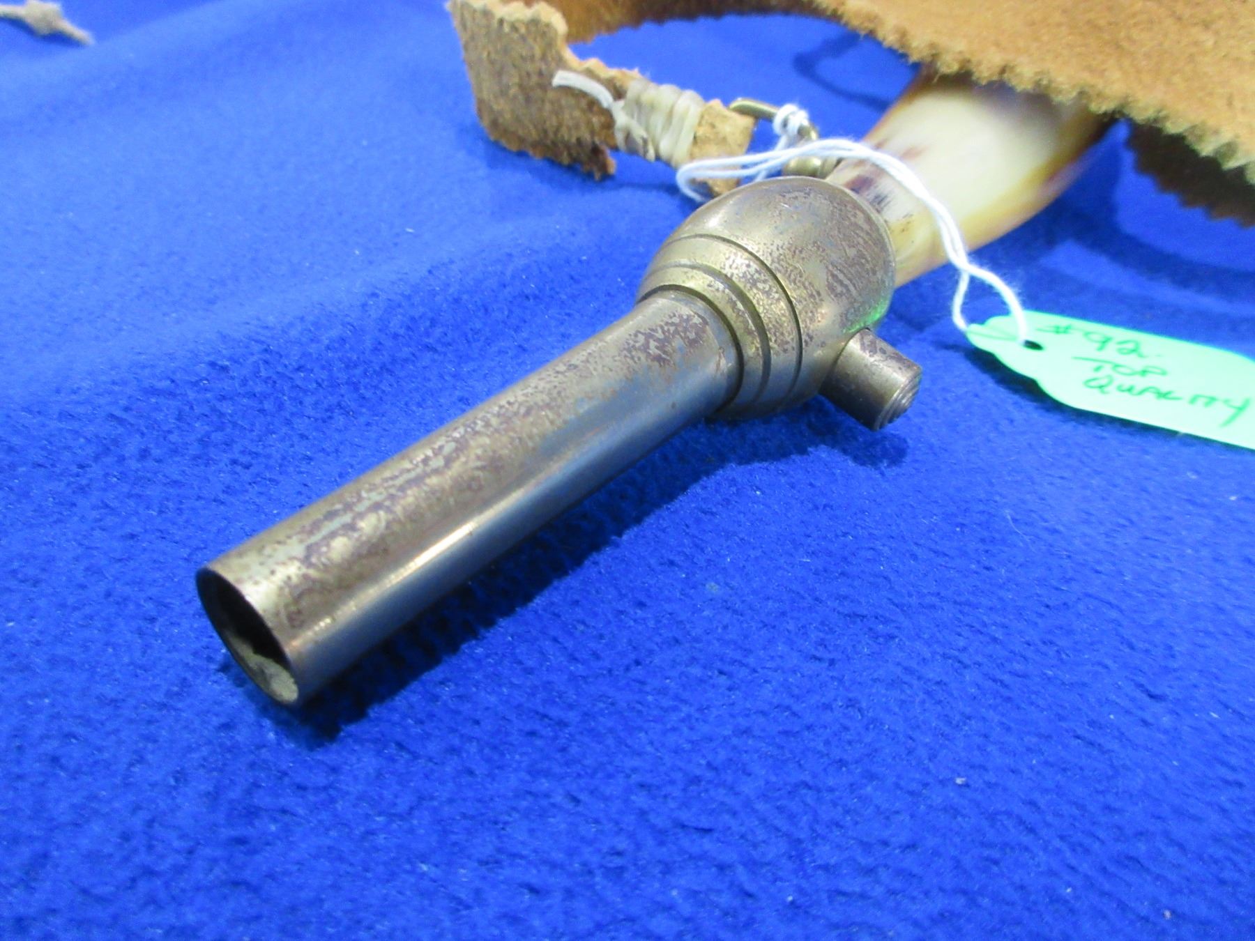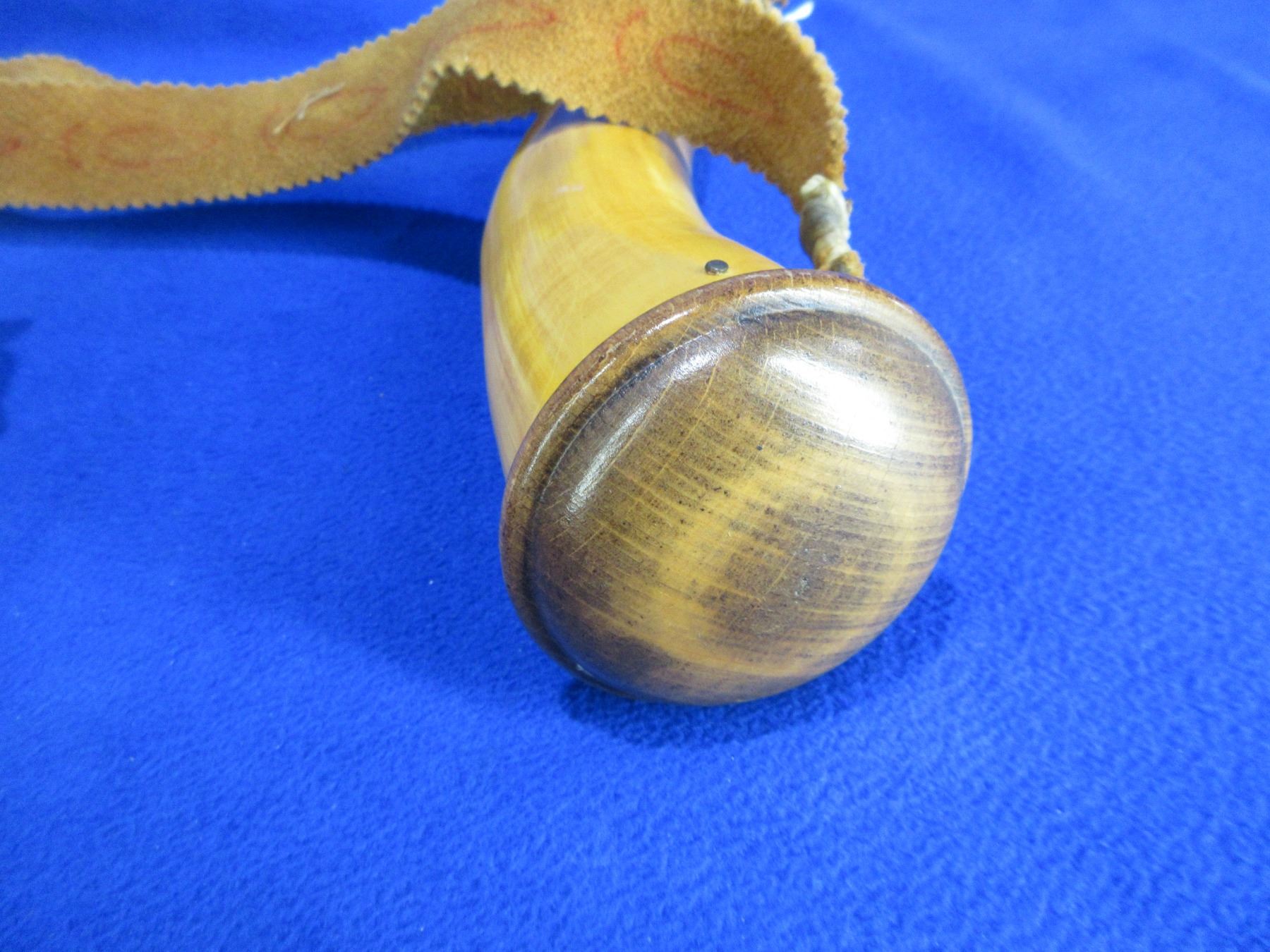Vintage Powder Horn with Brass, Wood and Leather - Very Good Condition