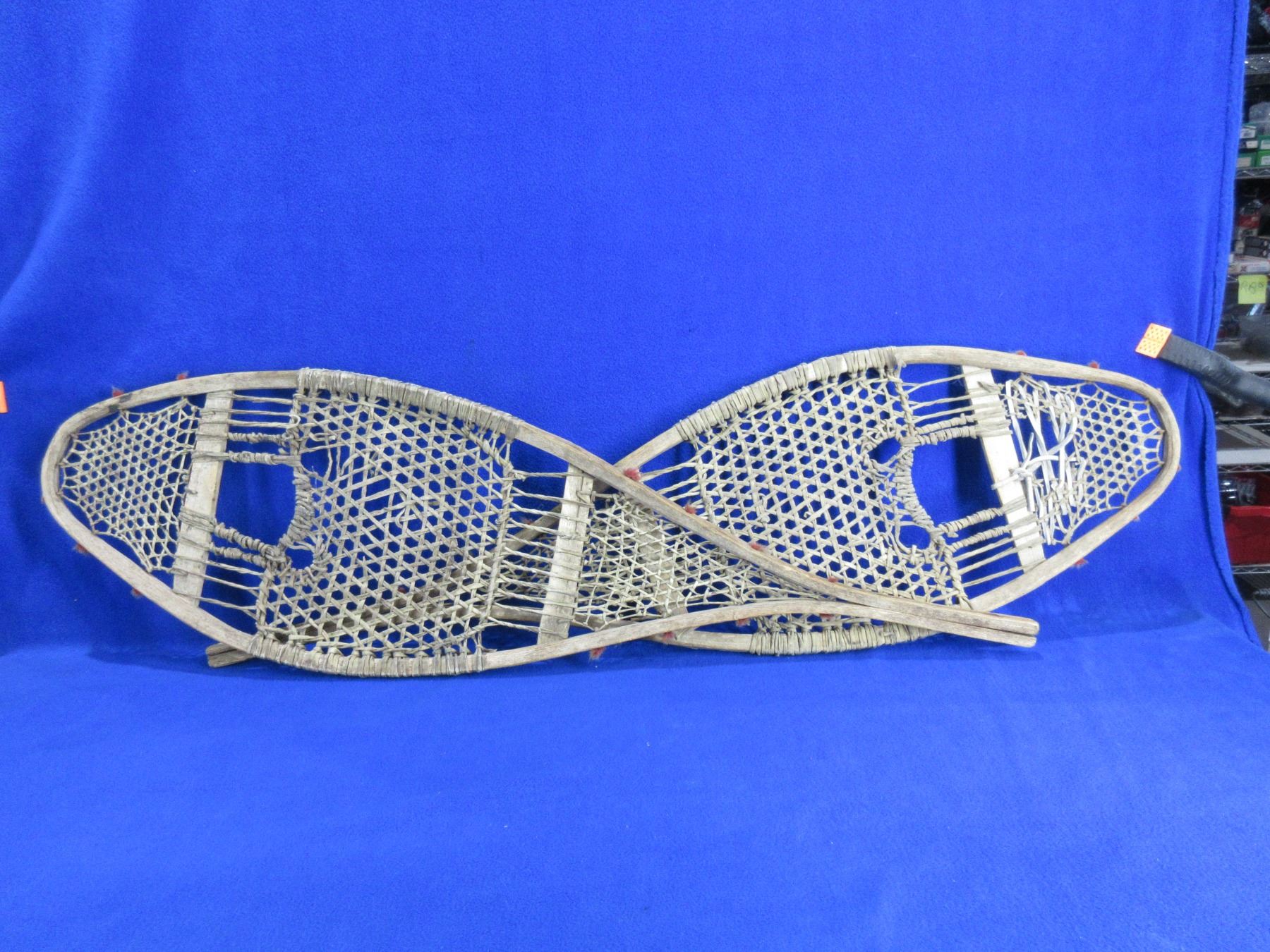 Vintage Snowshoes - 37" x 11" - Some of the webbing is damaged and some has been poorly repaired