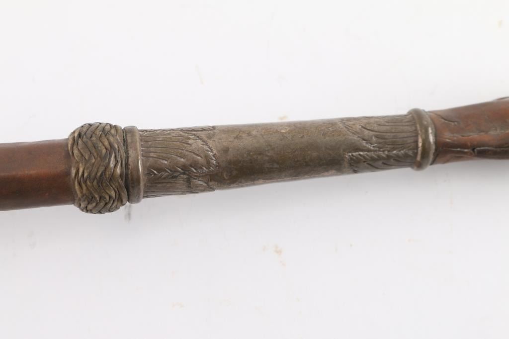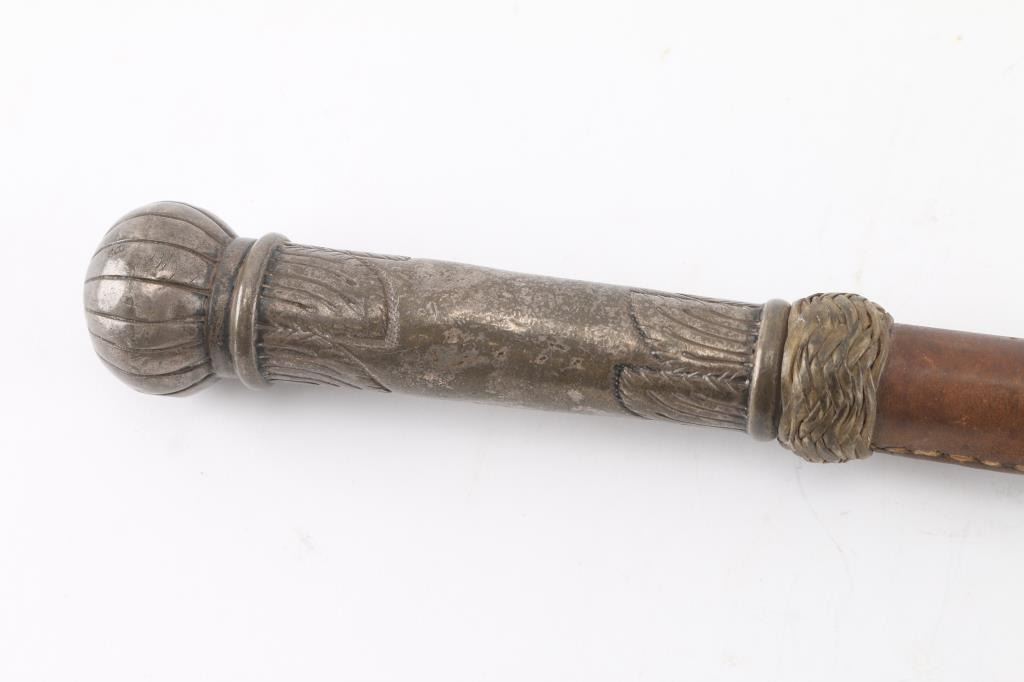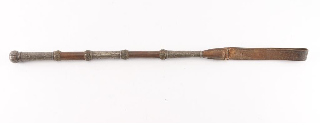 All leather weighted riding crop with 3 silver bands. Measures 27" from end to end.