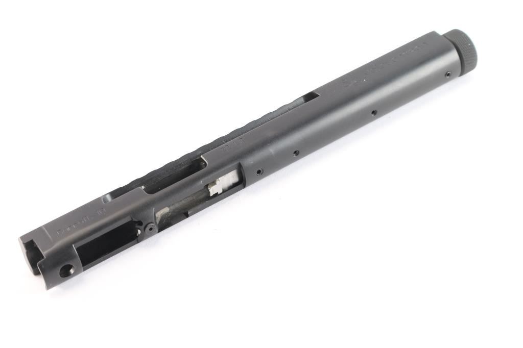 Scorpion LLV Competition Upper. A CNC-machined billet lightweight receiver. The receiver and barrel shroud are precision-machined as one piece from aluminum. An integral Picatinny rail is machined into the top of the receiver. 6" precision stainless steel barrel. Stainless steel breech face. 1/2 x 28 TPI Threads and Thread Protector. Black Anodized Aluminum. Works with any MKII or MKIII frame (either 22/45 or Target Model). Overall 10 1/2". Like new, bore is pristine. NRA Condition-Perfect/Like New. Modern Firearm.