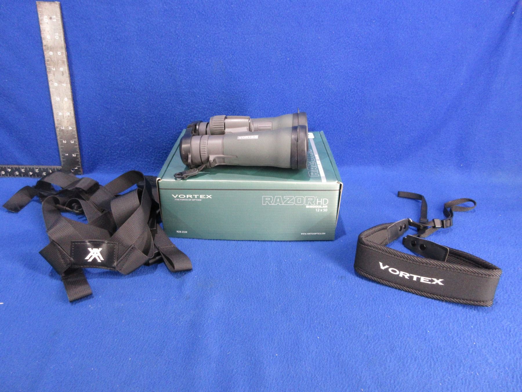 Vortex Razor HD 12X50 Binoculars - Appears Clear - Appear Unused - Comes with Harness, Neck Strap, Lens Covers and Original Box
