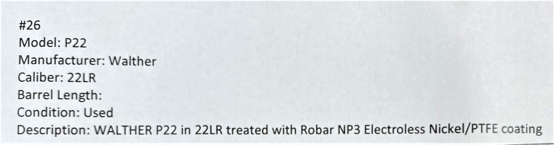 INCLUDED: WALTHER P22 in 22LR $450.00