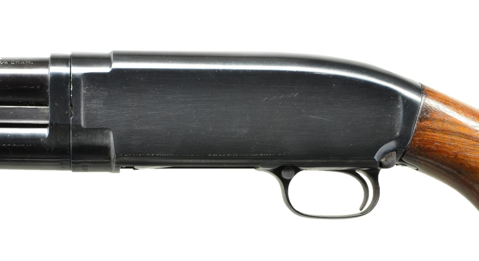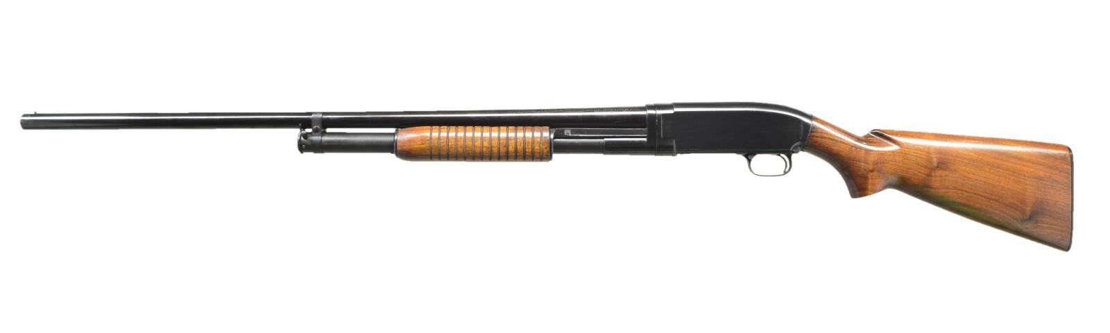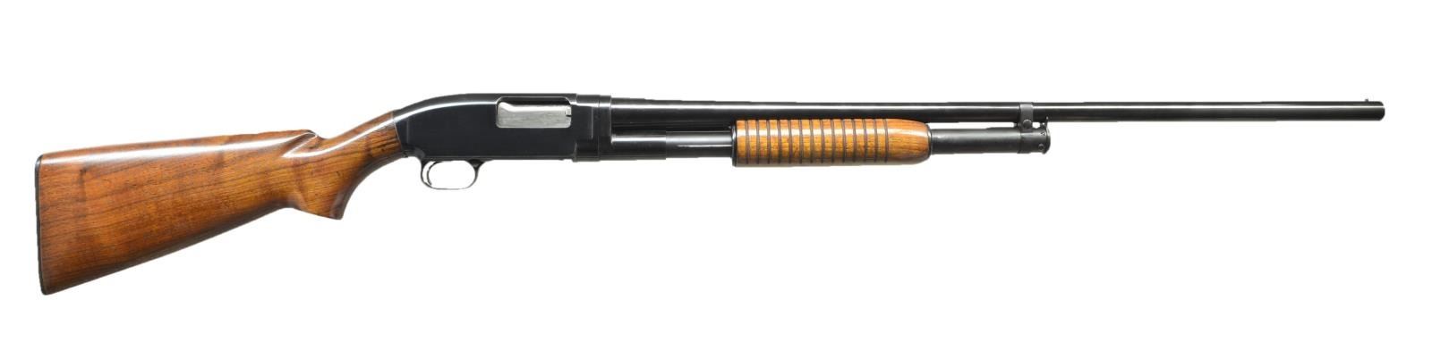 Cal. 12 Ga. 2 3/4". S# 1157947. Bbl. 30" w/ fixed Full choke & steel bead. Flat bottom grooved forearm & pistol grip walnut stock w/ original buttplate. Mfg. 1948. CONDITION: over 90% reblued metal finish showing small spots. Sanded & refinished wood. Sound mechanics. Very good bore. (21-2218/DS). CURIO. $300-450.
