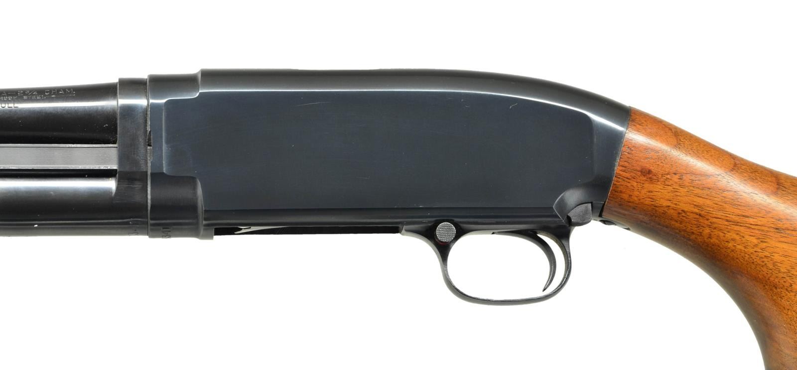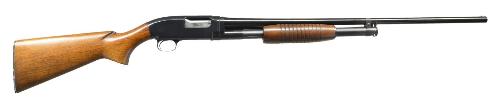 Cal. 20 Ga., 2 3/4". S# 1658341. BBL. 28" plain w/ fixed full choke. Large round grooved forend & pistol grip walnut stock w/ original buttplate. 1957 mfg. CONDITON. near excellent condition retaining over 97% original blue. Very good wood finish. Bright near excellent bore.(23-602/DS). CURIO. $600-900