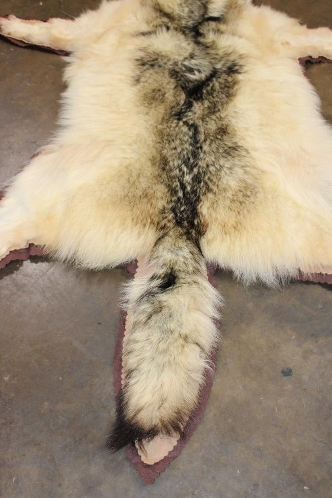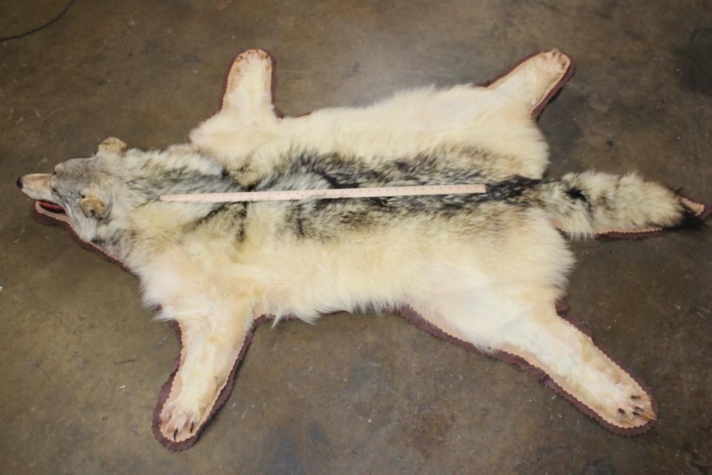 Very Nice and Clean WOLF Hide or WOLF Rug. It is mounted with its Head. Paws and Claws (all claws but 2). It measures 78" Long x 55" Wide and is Double Felted. It is in Very Good Condition. TAXIDERMY RUGS