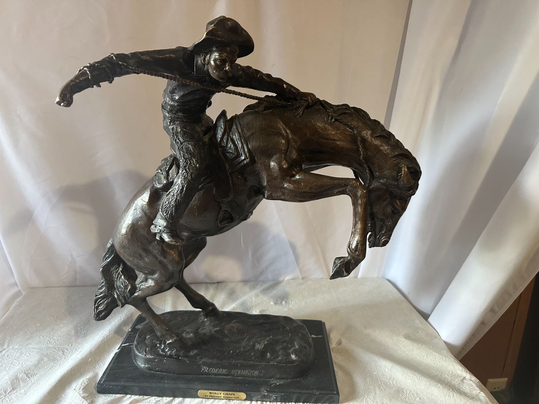 Embracing the allure of Wooly Chaps means welcoming a timeless and captivating piece into your collection. Remington's ability to breathe life into bronze is evident in this remarkable sculpture, which promises to inspire admiration and appreciation for years to come.