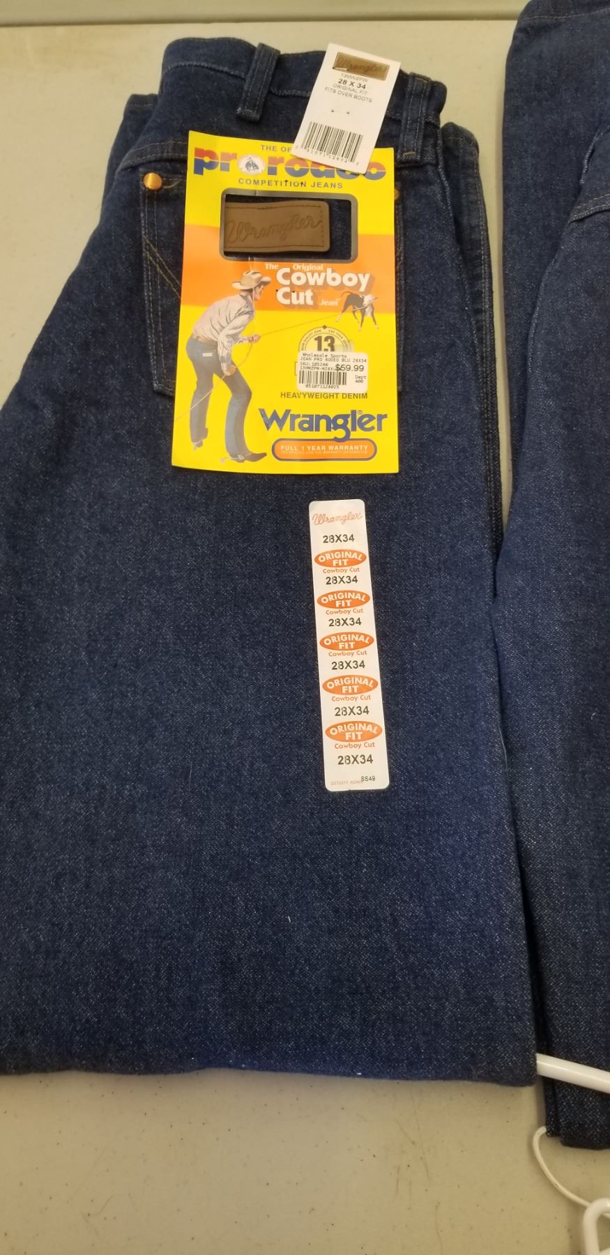 WRANGLER JEANS 28X34, 28X36(X2) RETAI VALUE $180