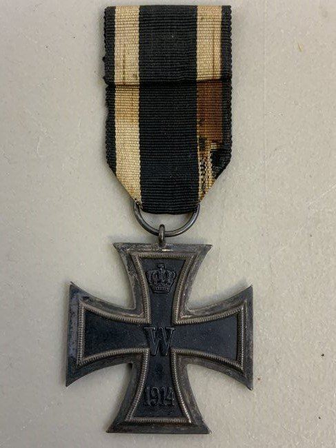 WWI IMPERIAL GERMANY 1914 IRON CROSS 2nd CLASS . GREAT CONDITION ON ORIGINAL RIBBON .