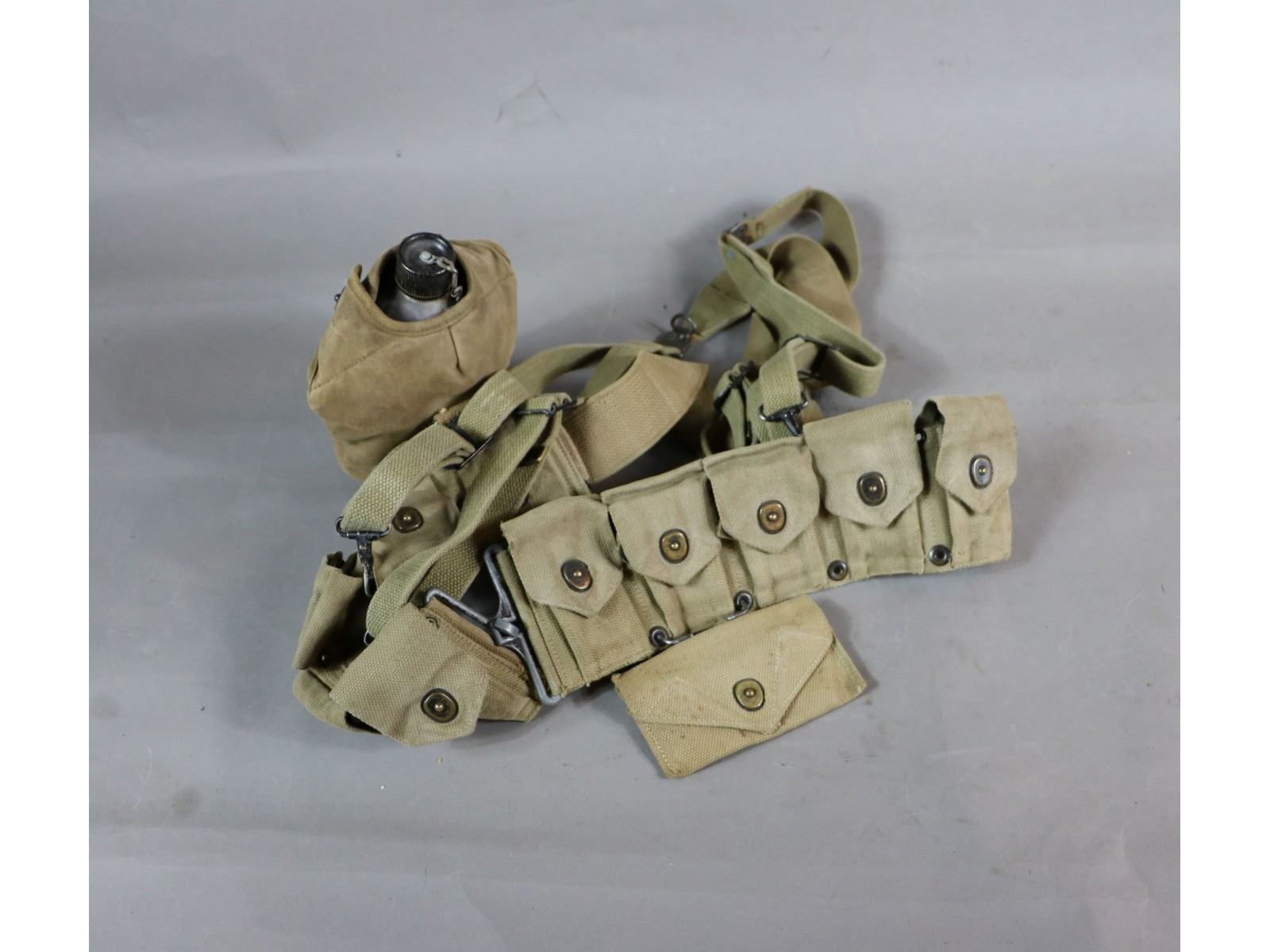 Include belt, suspenders, canteen, first aid kit. Good to very good overall condition.