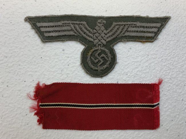 WWII GERMAN LATE WAR BREST EAGLE PATCH AND RUSSIAN FRONT MEDAL RIBBON