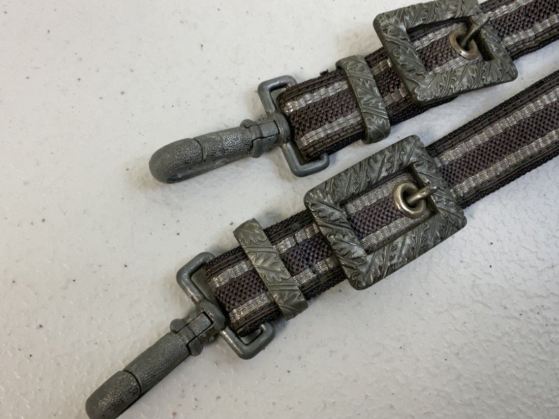 WWII GERMAN LUFTWAFFE OFFICER DAGGER HANGERS . VERY GOOD CONDITION WITH NORMAL WEAR FOR ITS AGE . DRGM MARKED CLIP ON THE BACK