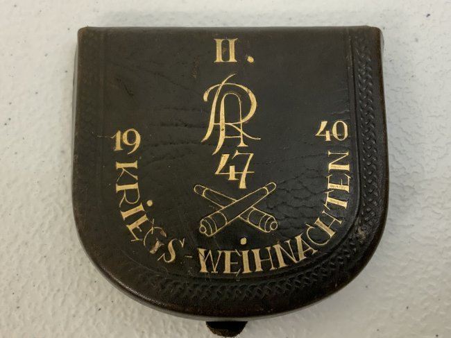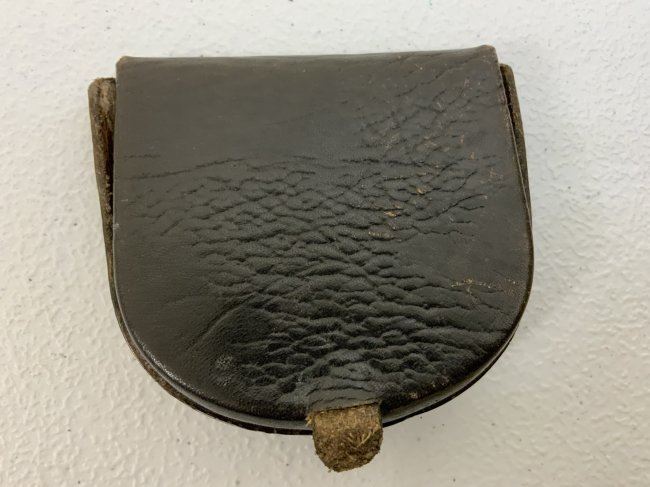 WWII GERMAN SOLDIER LEATHER COIN PURSE 1940 DATED . ARTILLERY REGIMENT MARKED. GREAT CONDITION WITH MANUFACTURING STAMP INSIDE . RARE FIND .