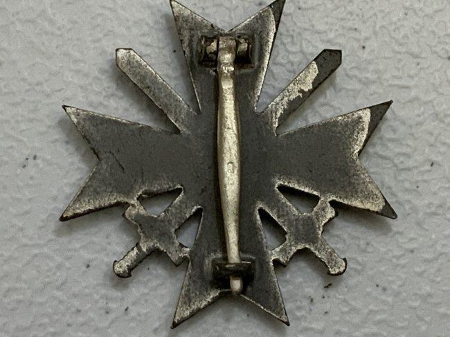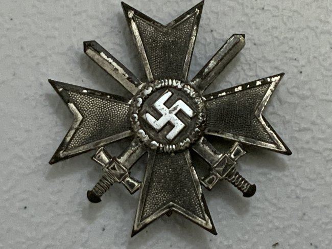 WWII GERMANY THIRD REICH WAR MERIT CROSS 1st CLASS WITH SWORDS . LATE WAR ZINK BASE EXAMPLE . REMNANTS OF SILVER WASH FINISH. MARKED 4 ON THE PIN