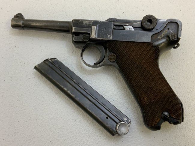 WWII NAZI GERMAN P08 LUGER 1937 DATE PISTOL 9MM. GREAT CONDITION GUN WITH ALL NUMBERS MATCHING EXCLUDING MAGAZINE . GREAT BORE . SER. # 6656. WOOD CHECKERED GRIPS . ALUMINUM BOTTOM MAGAZINE WITH NUMBER 4149 NICE COLLECTABLE GUN. FFL REQUIRED . NO INTERNATIONAL BIDDERS PLEASE .