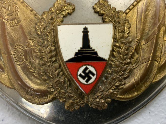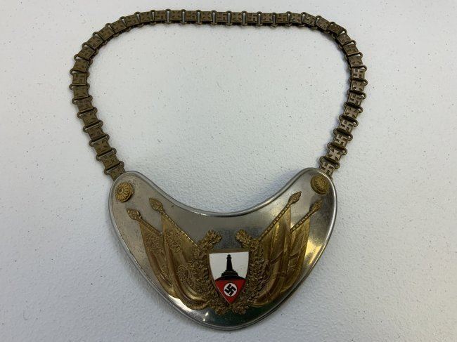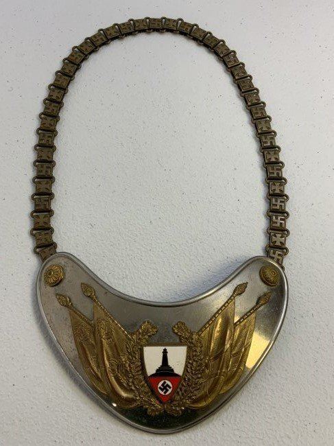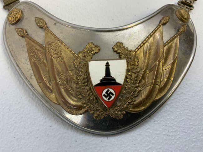 WWII NAZI GERMAN VETERANS ORGANIZATION DRKB FLAG BEARER'S GORGET . GREAT CONDITION OVERALL WITH GREAT ENAMEL SHIELD. NO MATERIAL BACKING .