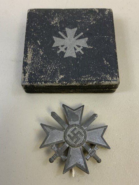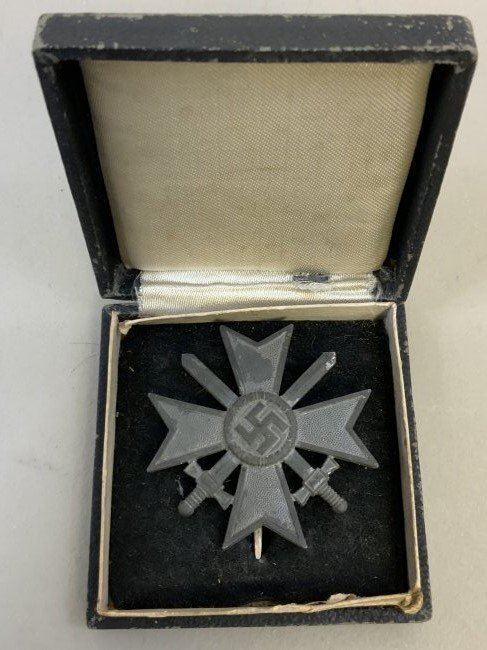 WWII NAZI GERMAN WAR MERIT CROSS 1st CLASS WITH SWORDS WITH BOX . GOOD CONDITION OVERALL .