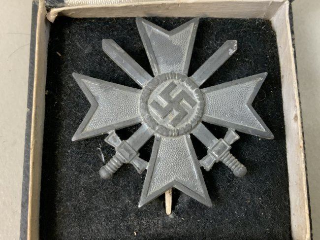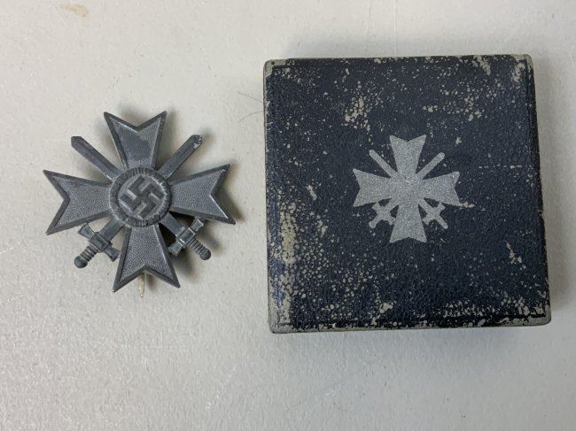 WWII NAZI GERMAN WAR MERIT CROSS 1st CLASS WITH SWORDS WITH BOX . GOOD CONDITION OVERALL