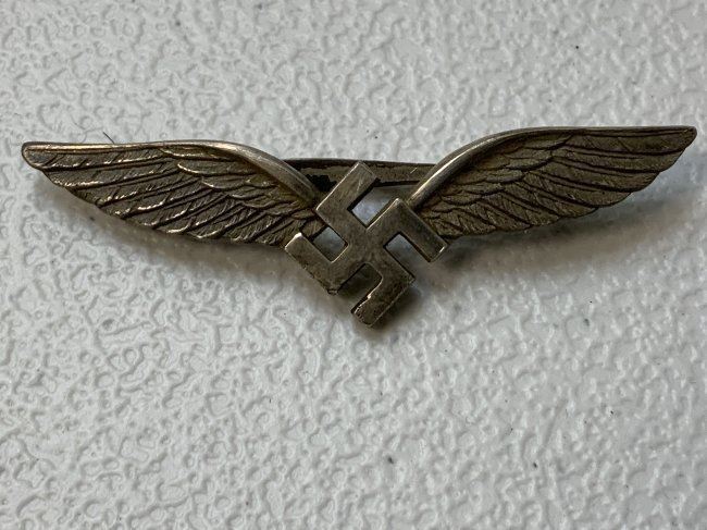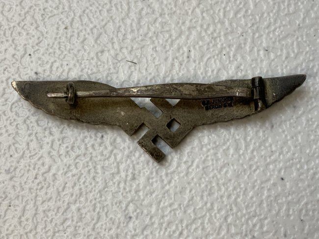 WWII NAZI GERMANY LUFTHANSA CIVILIAN AIRCRAFT PILOT - RADIO OPERATOR BADGE . GREAT CONDITION .MADE BY C.E.JUNKER . RARE