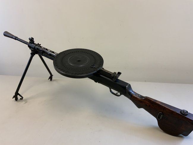 WWII RUSSIAN DP 28 DEGTYAREV DISPLAY MACHINE GUN DUMMY . MADE WITH ORIGINAL PARTS ASSEMBLED ON SOLID STEEL DUMMY RECEIVER. GREAT DISPLAY MODEL . COMES WITH 1 PAN ROUND MAGAZINE AND ORIGINAL BIPOD. NO INTERNATIONAL BIDDERS PLEASE .
