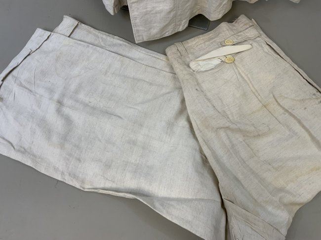 WWII SOVIET RUSSIAN NAVY SUBMARINE CAPTAIN SUMMER UNIFORM TUNIC AND PANTS . VERY RARE FIND. WELL WORN BUT STILL GOOD CONDITION. MEDIUM TO LARGE SIZE.