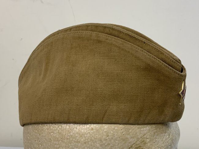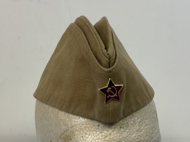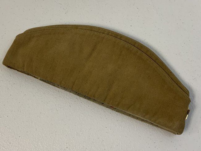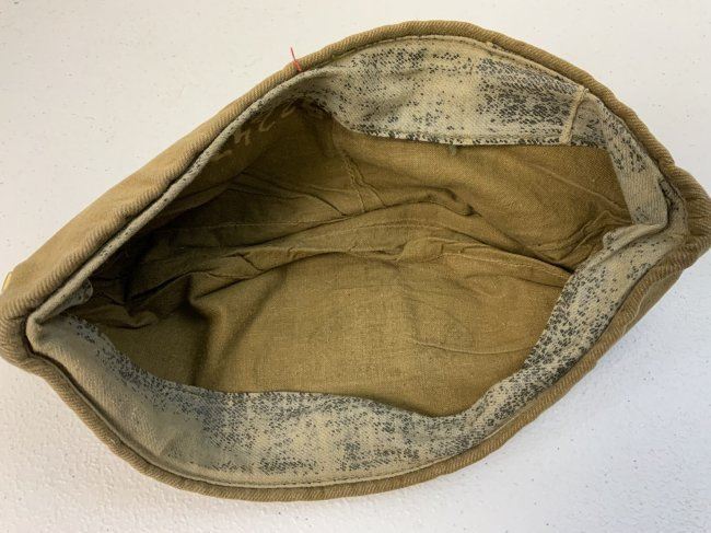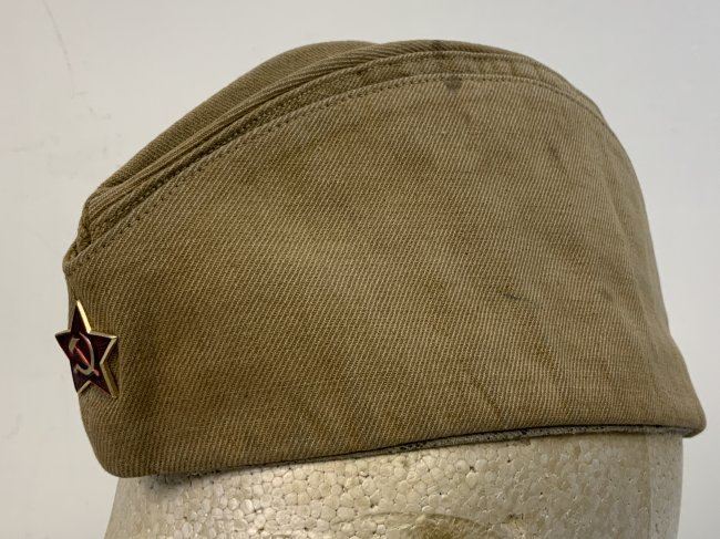 WWII STYLE SOVIET RUSSIAN PILOTKA HAT CAP . RED STAR. GOOD WORN CONDITION . SIZE 57 . DATES AROUND 1950'S . NAMED INSIDE
