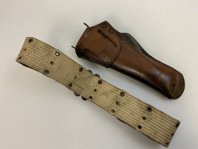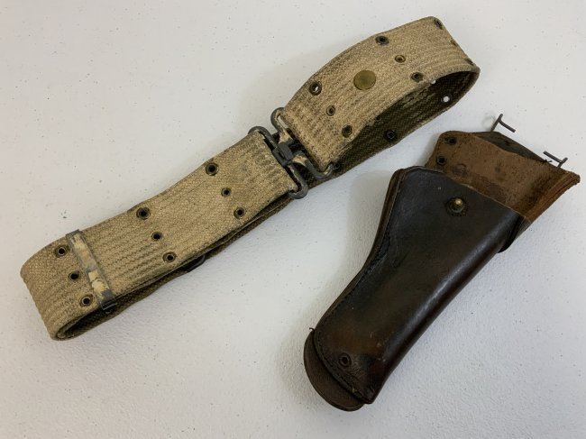 WWII US GI PISTOL BELT AND COLT HOLSTER . WELL USED CONDITION .