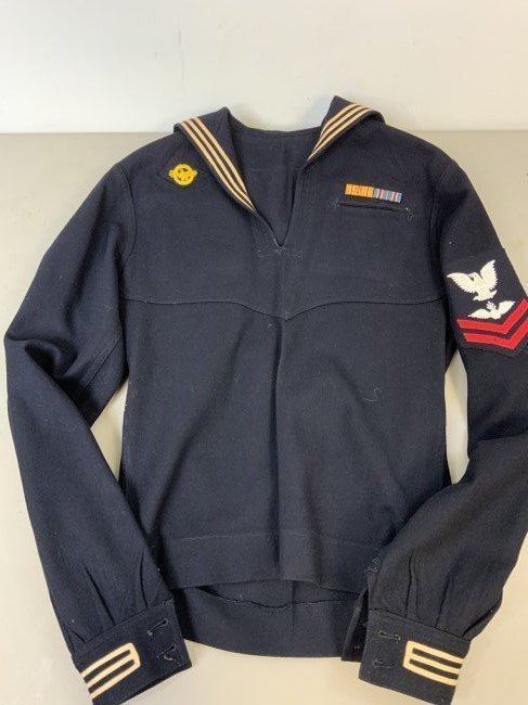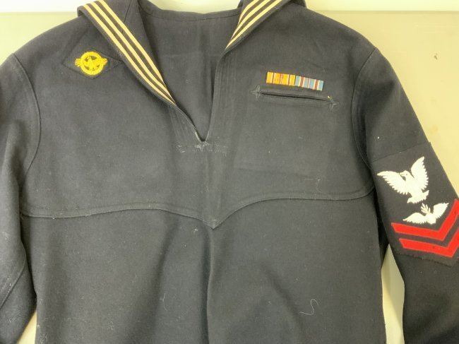 WWII US NAVY PETTY OFFICER DRESS UNIFORM JUMPER "CRACKERJACKS". VERY GOOD CONDITION. SMALL SIZE