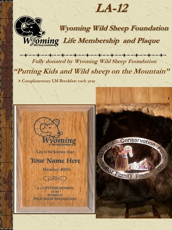The Wyoming Wild Sheep Foundation (WY-WSF) is organized to put and keep kids and wild sheep on the mountain by generating funds by auctioning items donated by individuals and/or companies.