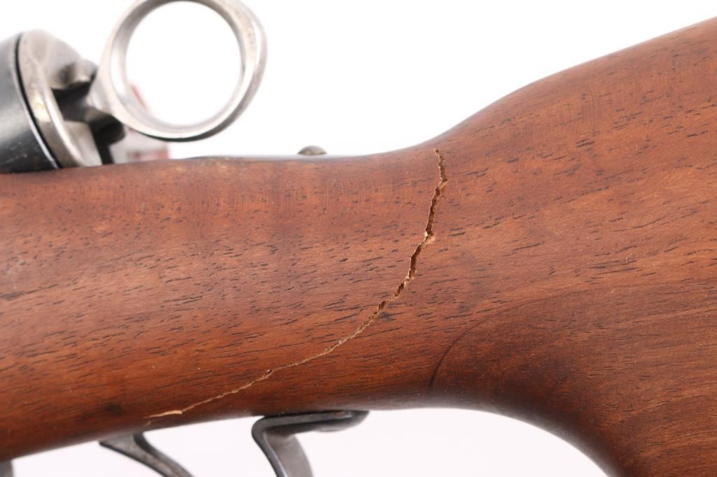 GOOD: Some minor replacement parts; metal smoothly rusted or lightly pitted in places, cleaned or re-blued; principal letters, numerals and design on metal legible; wood refinished, scratched bruised or minor cracks repaired; in good working order.