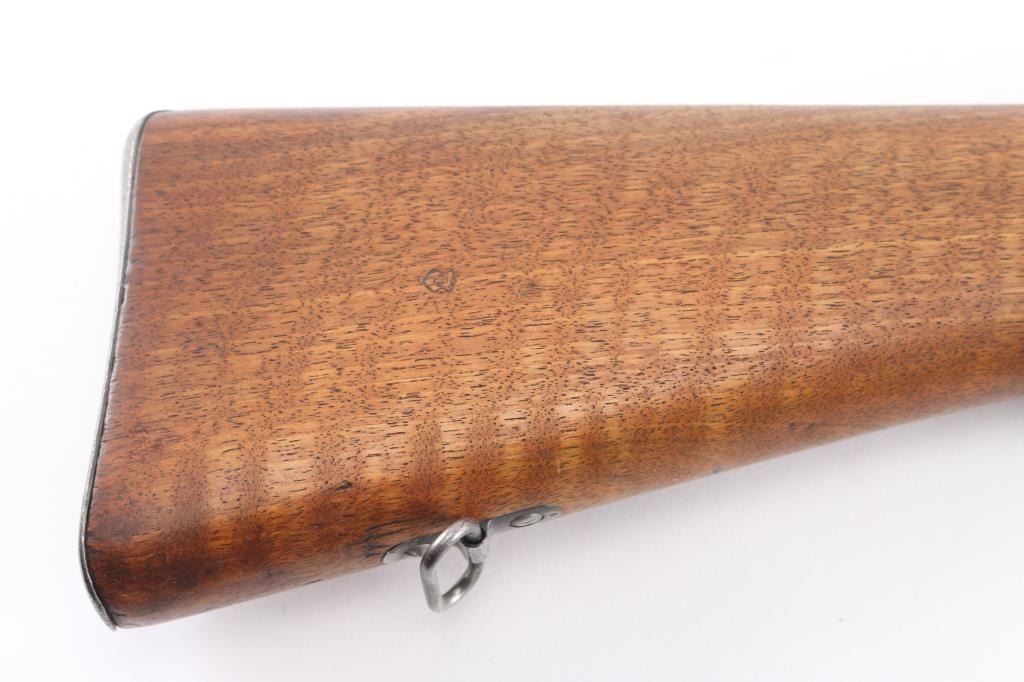 GOOD: Some minor replacement parts; metal smoothly rusted or lightly pitted in places, cleaned or re-blued; principal letters, numerals and design on metal legible; wood refinished, scratched bruised or minor cracks repaired; in good working order.