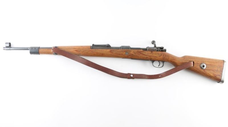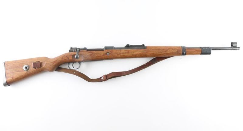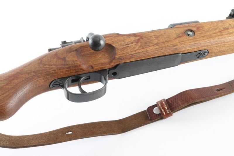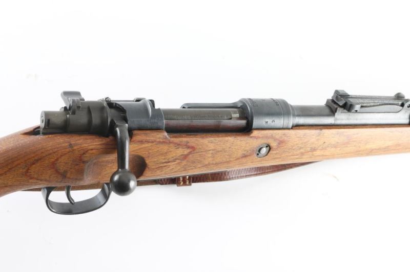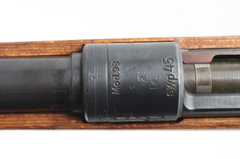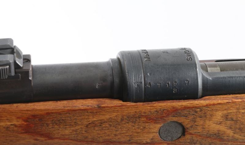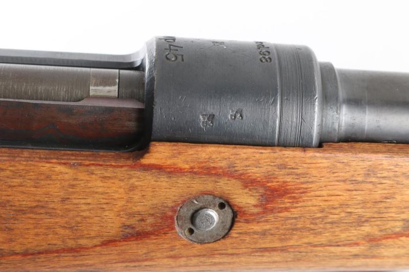 SN: 47157a. Rifle. bolt-Action. German WW2 military issued Infantry rifle. 24" barrel with hooded ramp/post front and tangent rear sights. One of the rarest late war K98 variations. Made in the last days of WW2 at the Czech Waffenfabric Brunn arsenal. Of the two variants of this rifle, this is the rarer with adjustable rear sights. The other variant had a sheet medal rear sight. Manufactured without bayonet lug, or cleaning rod. Stamped barrel bands. Receiver ring stamped "swp 45", with Eagle proof and 3 Waffenamts Eagle/63. Eagle proof left lower barrel. Serial number on left receiver ring.Waffenamt Eagle/26 stamped on the triggerguard. "1" is stamped on the floorplate. Serial number matches on the bolt, bolt sleeve, and receiver, the rest unmarked. Stock is unmarked. Cupped steel buttplate is unmarked. Modified K98 sling attached. Bore appears good with strong rifling, but dirty. Wood stock/handguard are very good. Blued finish is about 90% with handling/edge wear, and minor scratches. Extractor is plum colored. Action is crisp/tight. Unmodified examples are rare as most of these rifles saw use with Israeli, of Czechoslovakian forces. No post war marking, or import marks. NRA condition- Near Very Good. C&R Firearm.