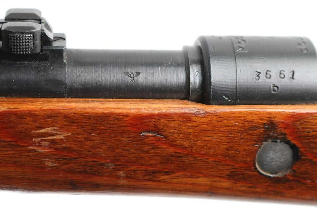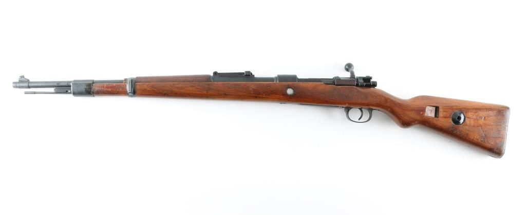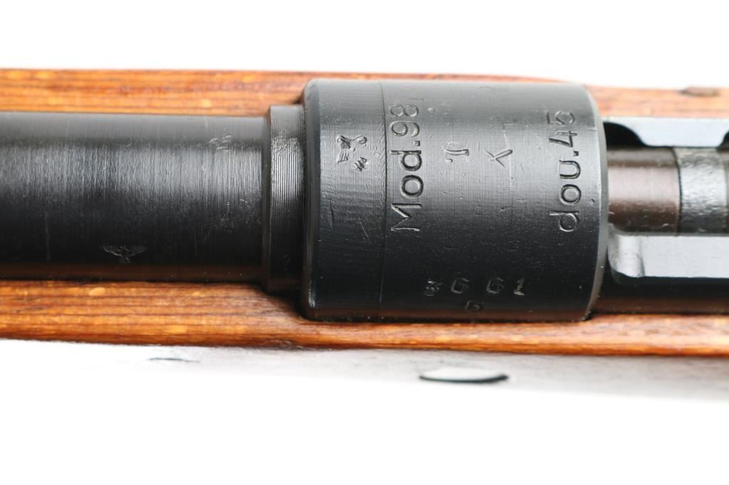 German WW2 military issued rifle. Late war. Receiver ring stamped "dou", and dated 1945. (Waffenwerke Brunn) This is a Russian capture/refurb. X stamped on receiver ring. Re-blued. stock varnished. Original serial numbers match on barrel, and stock (Stamped by the Russians) Mismatched sns on floorplate, triggerguard, etc, The bolt, floorplate, and triggerguard have been electropenciled with matching SNs Cleaning rod.. Bore is very good/bright. Action is tight, Wood/metal are good as refinished. No Import marks. NRA Condition-Good C&R Firearm.