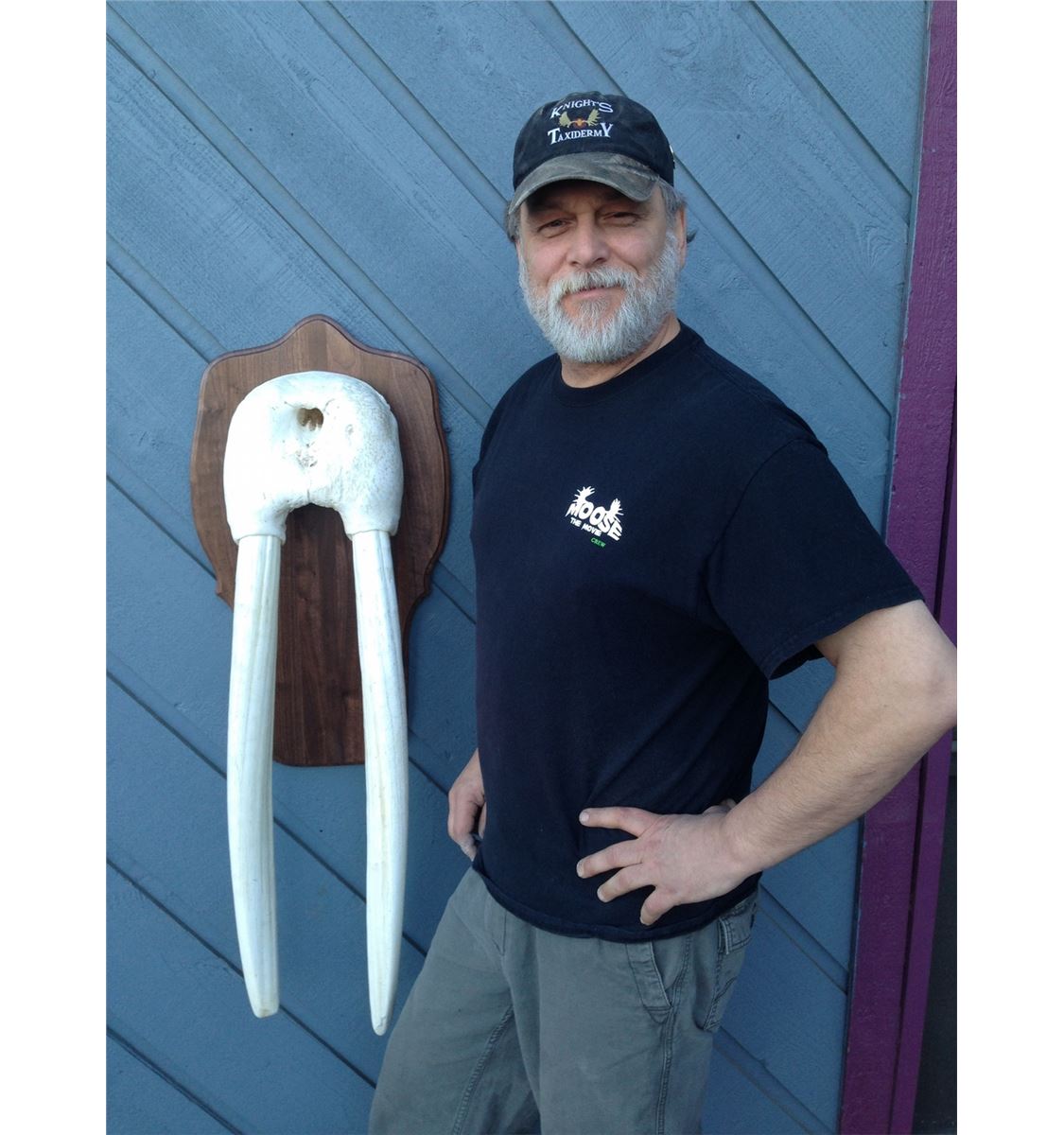 Knight's Taxidermy of Anchorage has donated a Walrus Reproduction Cast Skull and Tusks by Russell Knight.