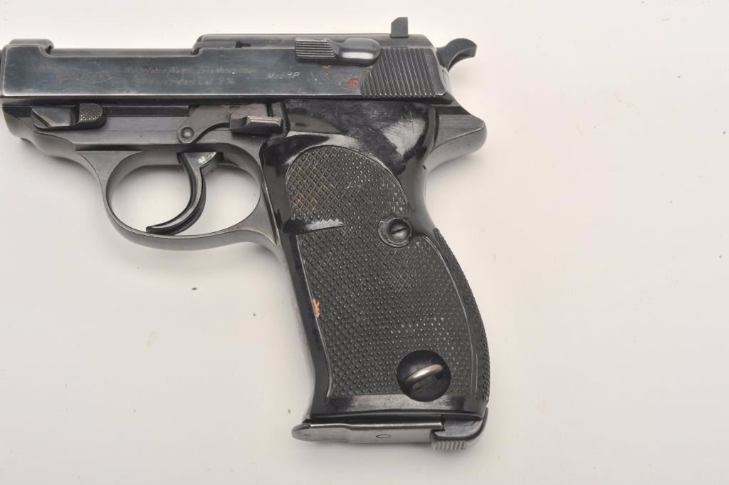 Walther Model HP semi-automatic pistol, 9mm caliber, 5” barrel, blued finish, checkered grips, S/N 1369, in overall very good to near fine condition showing the majority of its high polish blue finish, fine bore, crispaction, sharp markings and very good grips. (Modern/PPT). Est.: $1,200-$2,400.
