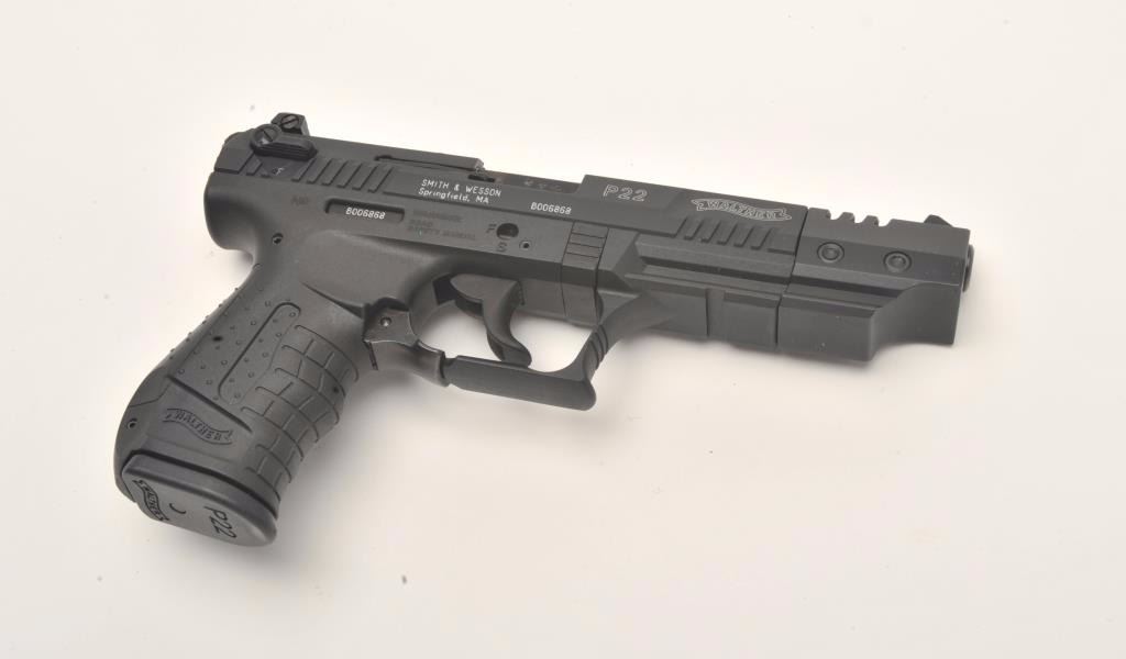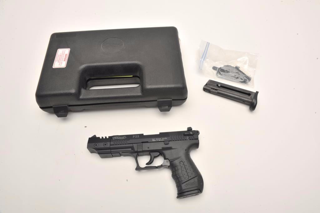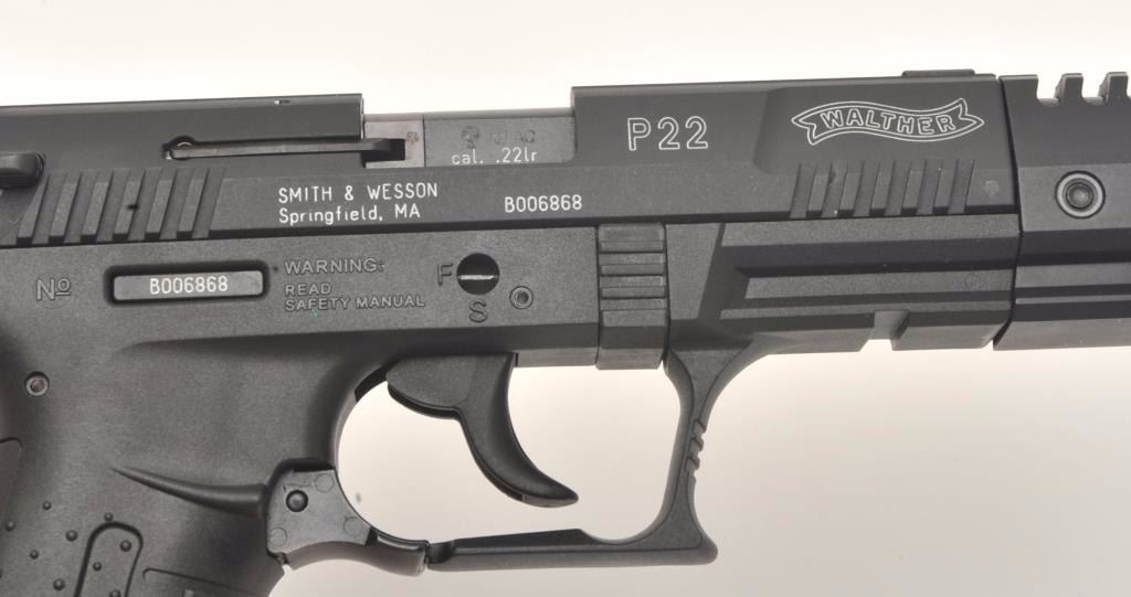 Walther Model P22 semi-automatic pistol, .22LR caliber, 3.5” barrel, black finish, S/N B006868, in overall like new condition with factory hardcase, one extra magazine and instructions. (Modern/No PPT).Est.: $250-$500.