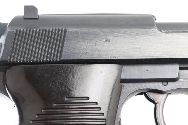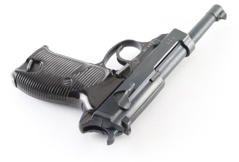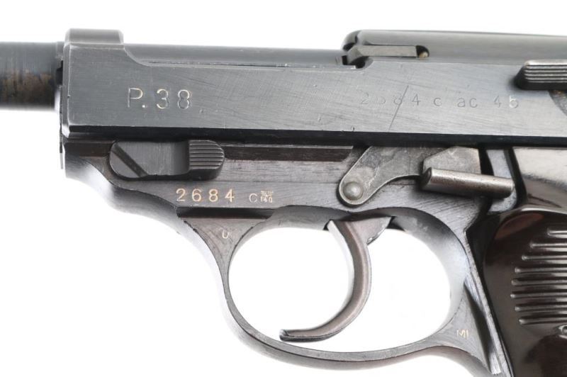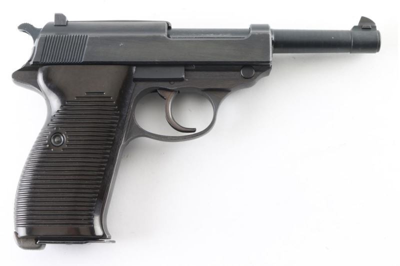 Pistol. Semi-Automatic. 8-rd magazine. Third Reich era Military issued sidearm. 4.9" barrel. Short recoil hinged locking piece assisted breechblock. Late war ac 45. Matched serial numbers, no number on locking block. Waffenamts. FN manufactured frame/Eagle over 140 stamp on left frame. "U" and "MI" stamped on left triggerguard. Bore appears very good/bright, strong rifling. Bakelite grips are very good. Blued finish is about 90% with minor scratches, and a area of loss to the underside of the barrel.. Original magazine stamped P.38. NRA Condition-Very Good. C&R Firearm.
